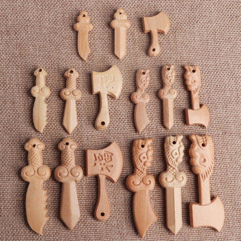 Feicheng 복숭아 나무 칼과 도끼 액세서리 펜던트 액세서리 실제 칼과 도끼 DIY 아기 팔찌 복숭아 나무 칼과 도끼 액세서리스토어 가기