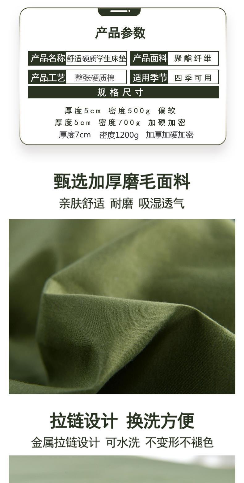 기숙사 매트리스 학생 하드 코튼 매트 스폰지 방습 매트 두꺼운 학교 군사 훈련 육군 녹색 싱글 매트리스