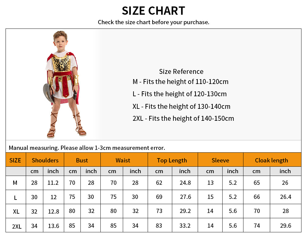 국경 간 신제품 어린이 스파르타 전사 공연 의상 할로윈 COS 의상 고대 로마 전사 의상