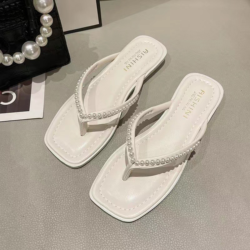 여성용 여름 아우터 슬리퍼 2025 새로운 요정 스타일 인터넷 연예인 라인스톤 스퀘어 토 비치 두꺼운 굽 슬리퍼스토어 가기