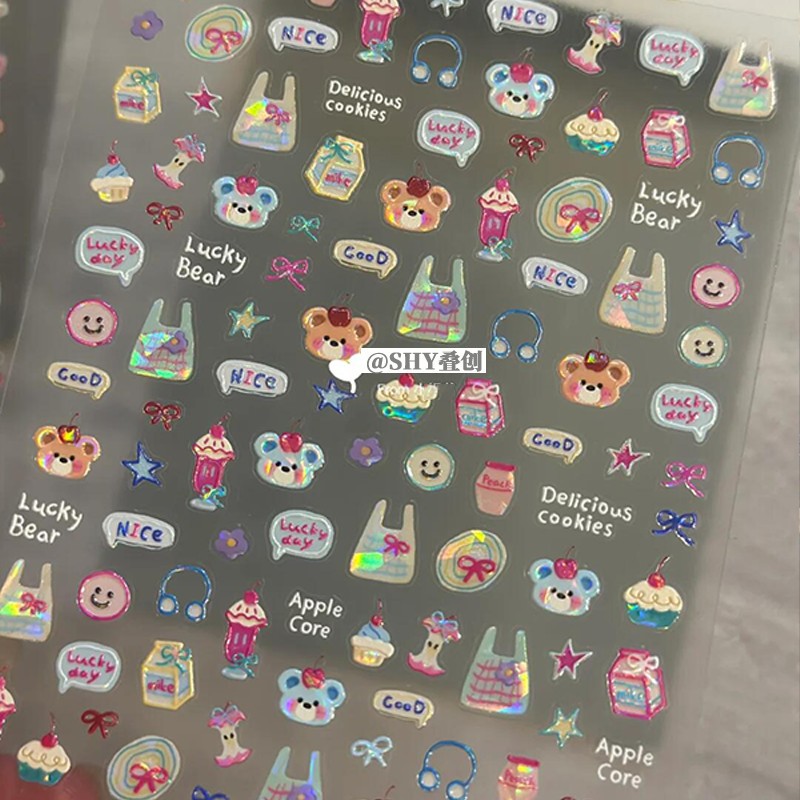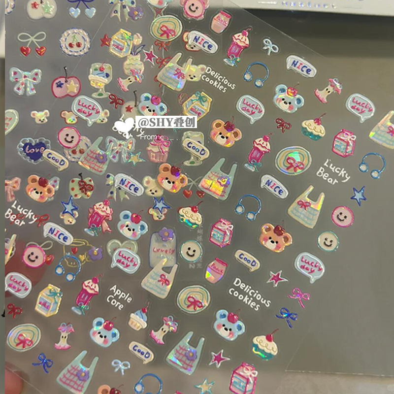 만화 낙서 귀여운 양각 웃는 얼굴 곰 네일 아트 스티커 작은 신선한 입체 펜 홀더 아기 diy 네일 스티커스토어 가기