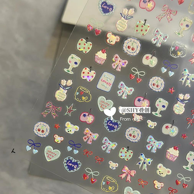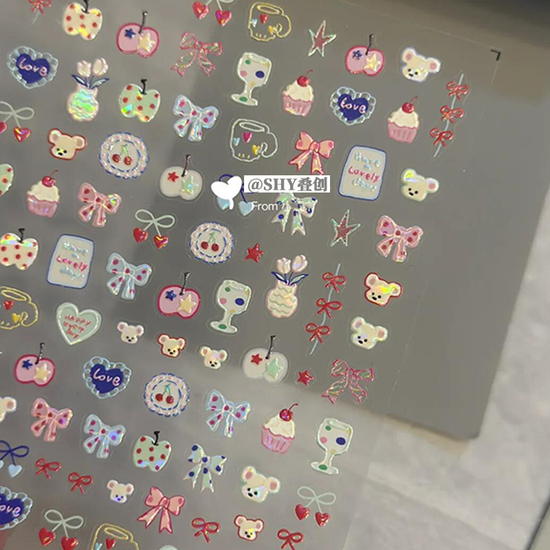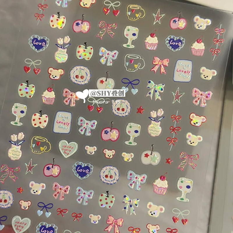 만화 낙서 귀여운 양각 웃는 얼굴 곰 네일 아트 스티커 작은 신선한 입체 펜 홀더 아기 diy 네일 스티커