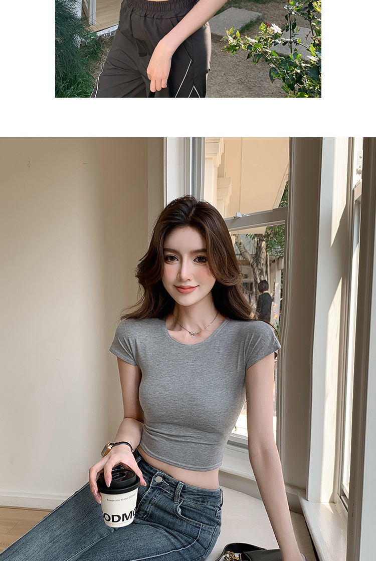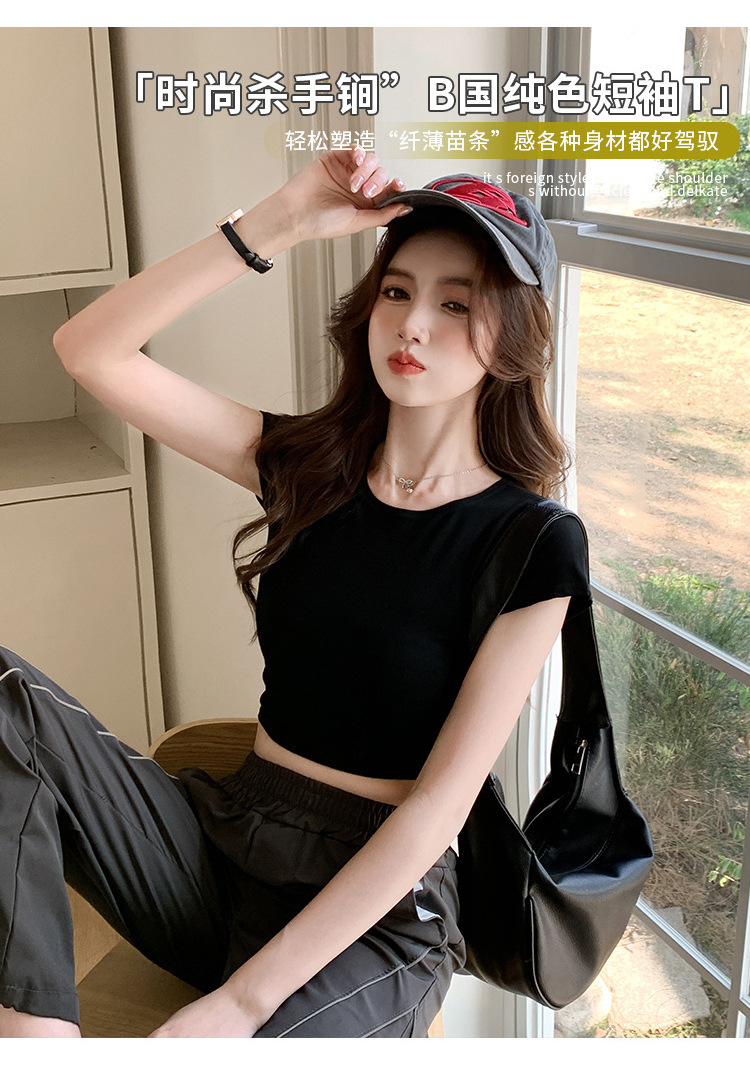 여성을위한 짧은 배꼽 노출 반팔 티셔츠 2025 여름 새로운 스타일 핫 소녀 흰색 오른쪽 어깨 셔츠 대외 무역 여성상의스토어 가기