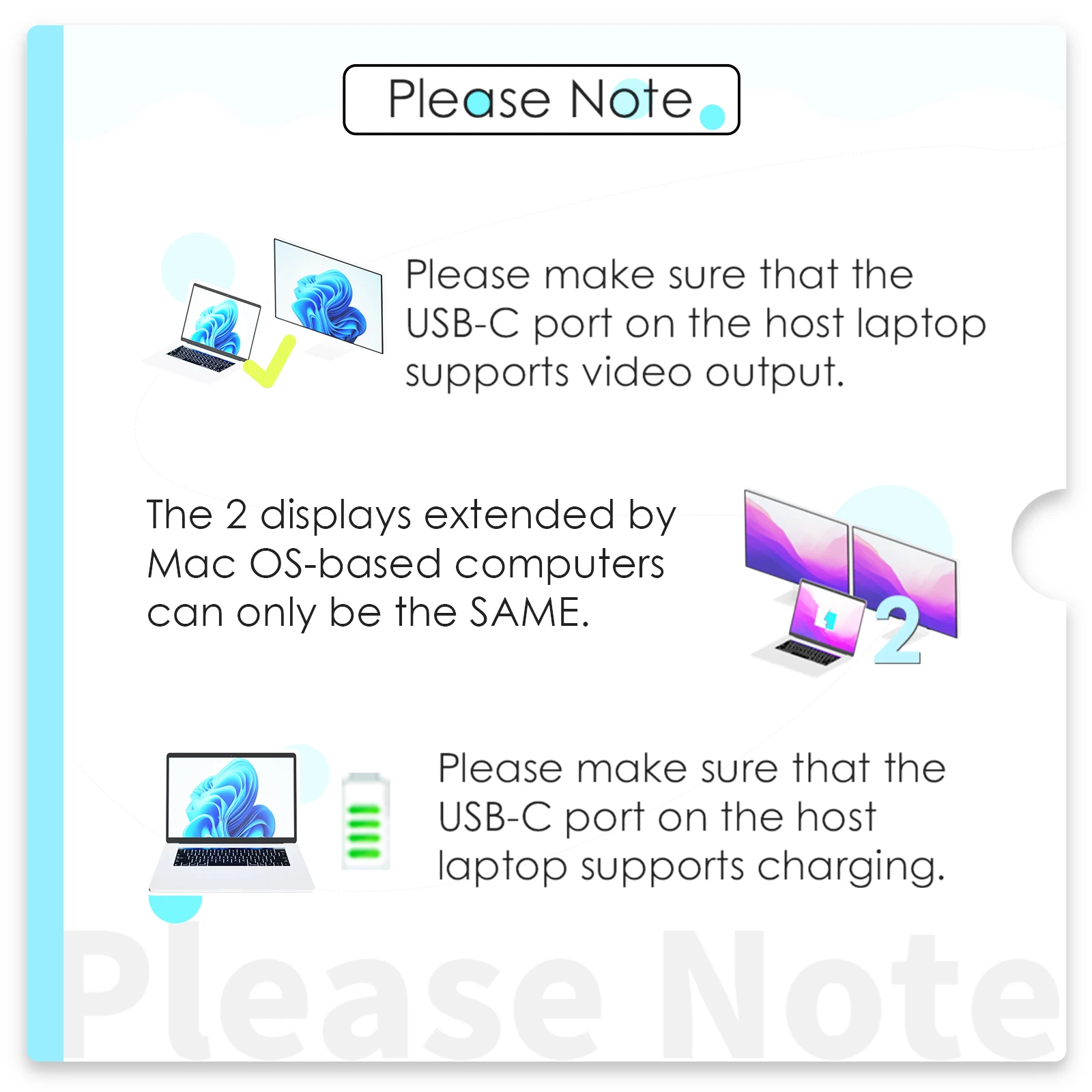 主机的type-C端口应支持视频输出和充电,以享受本集线器的全部功能。