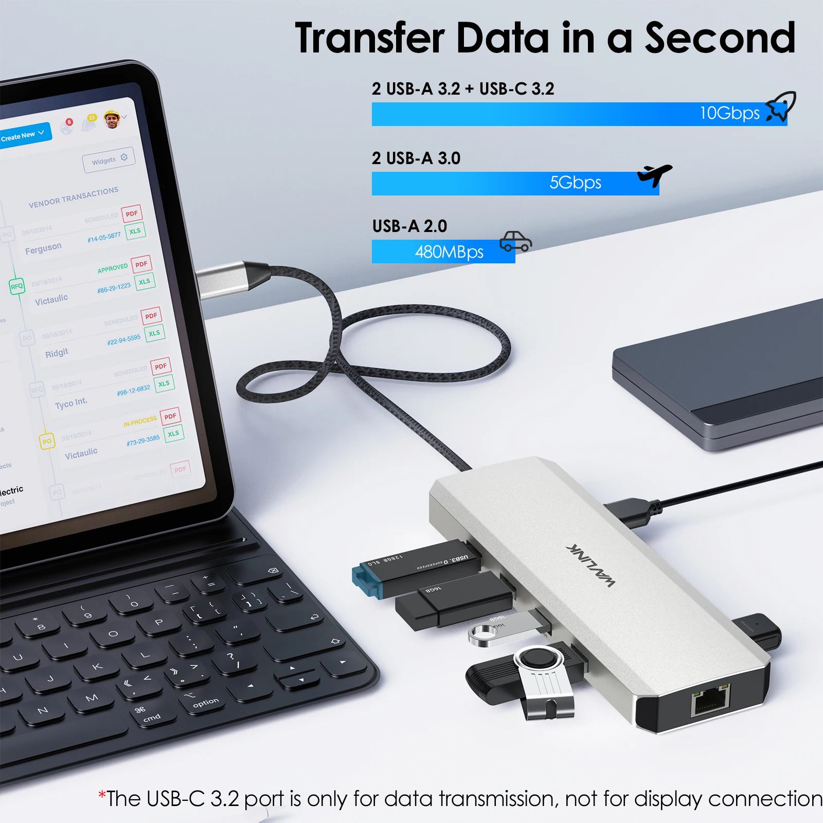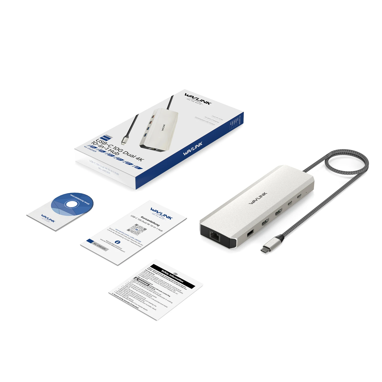 WAVLINK 100W PD输出双HDMI USB C 10Gbps USB-A/C 3 .2集线器