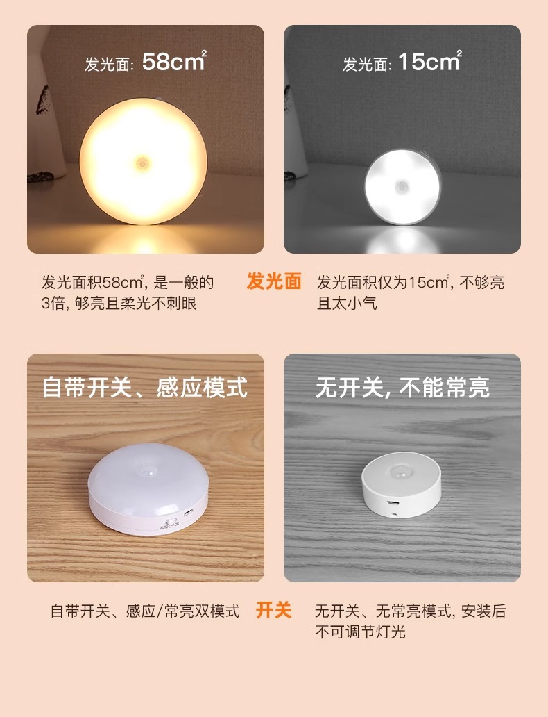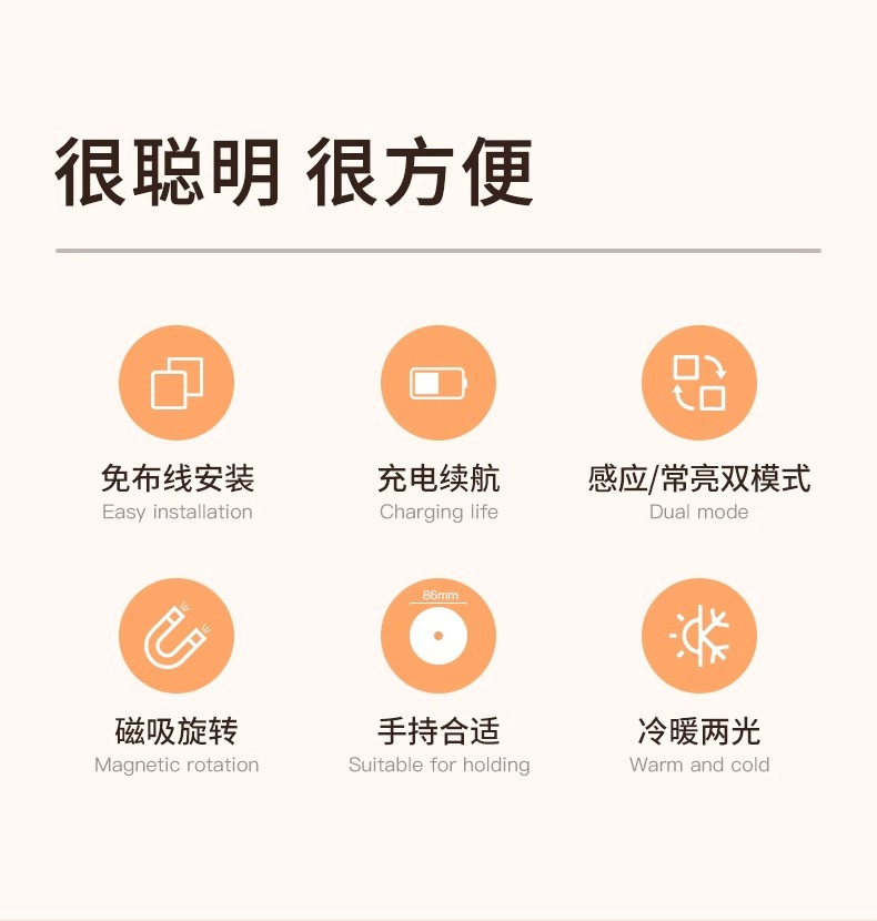 • 업그레이드된 Type-C [2색 조절 가능] 스위치가 있는 인체 유도 충전 모델 1개