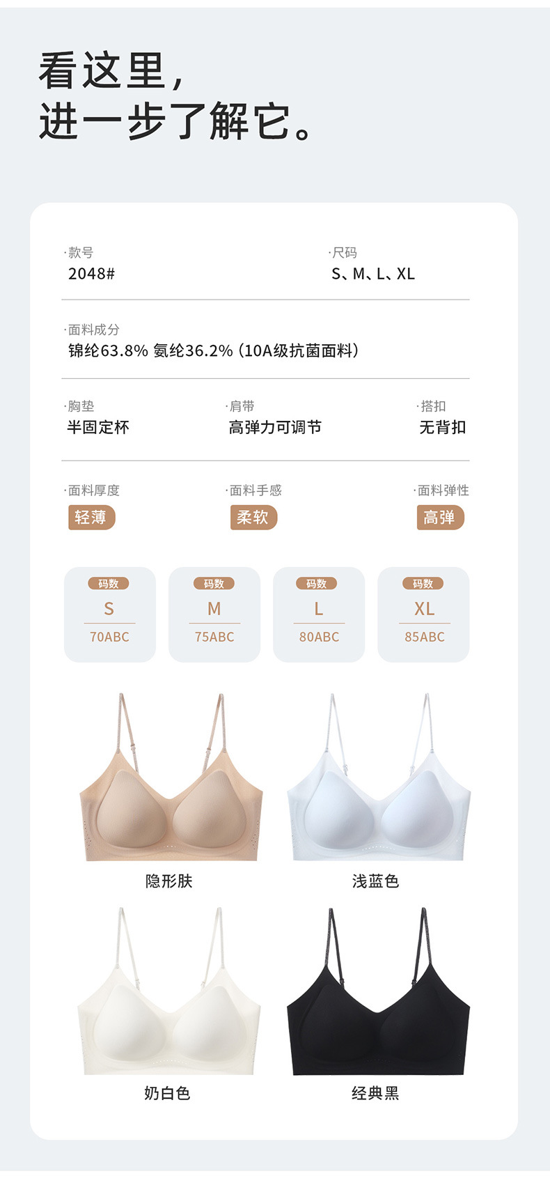 [맞춤형] 파운데이션처럼 보이지 않는 무봉제 여성용 속옷 통기성 좋은 조끼형 반짝이는 다이아몬드 얇은 어깨끈 부드러운 지지 브라