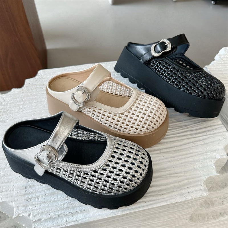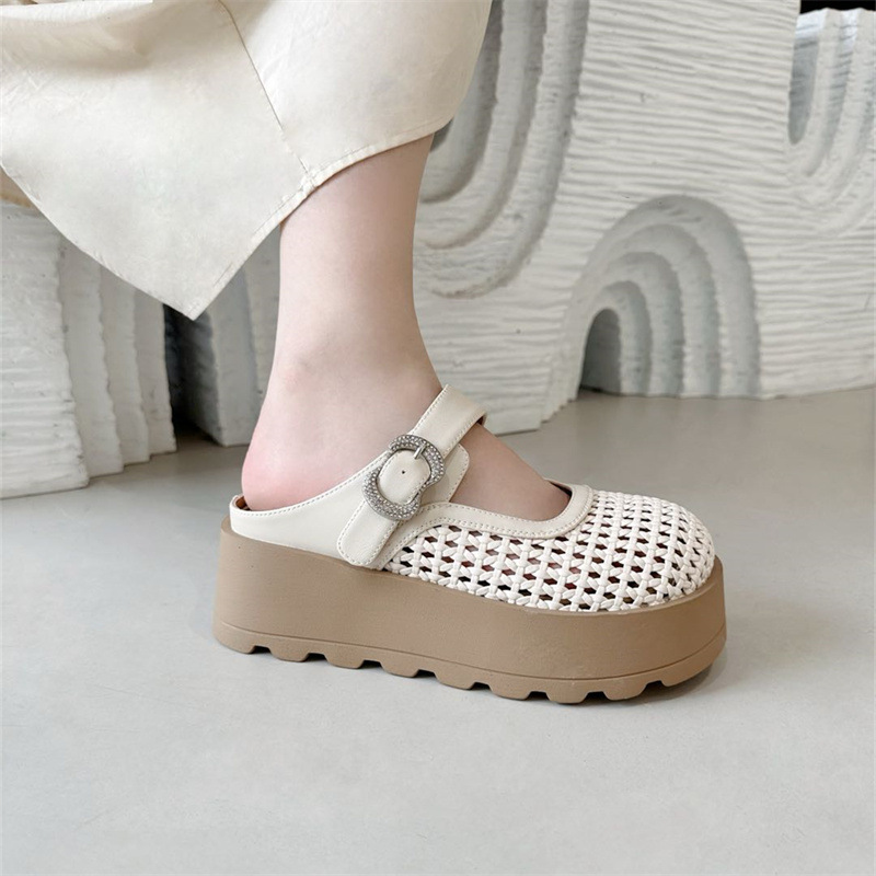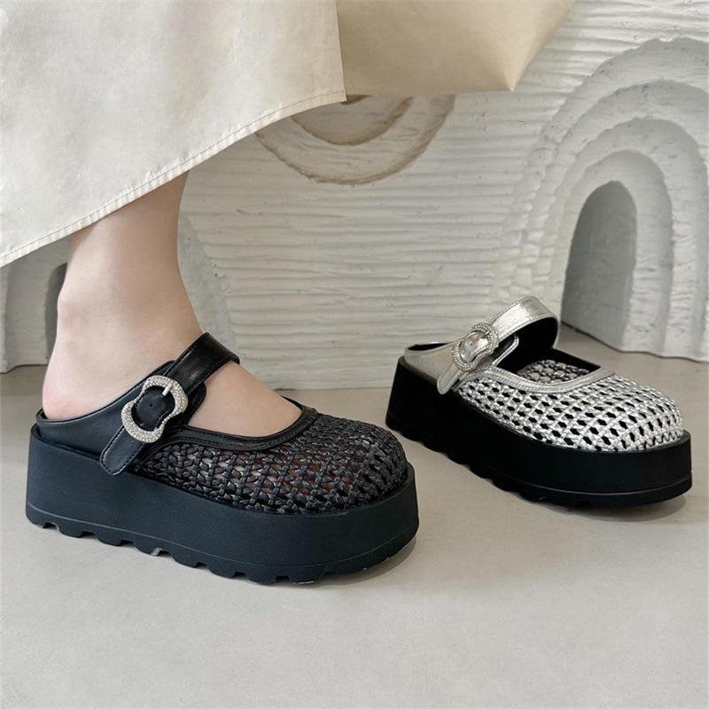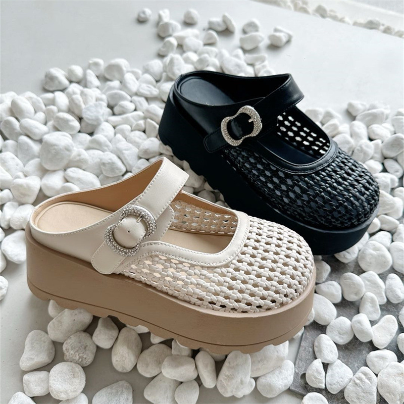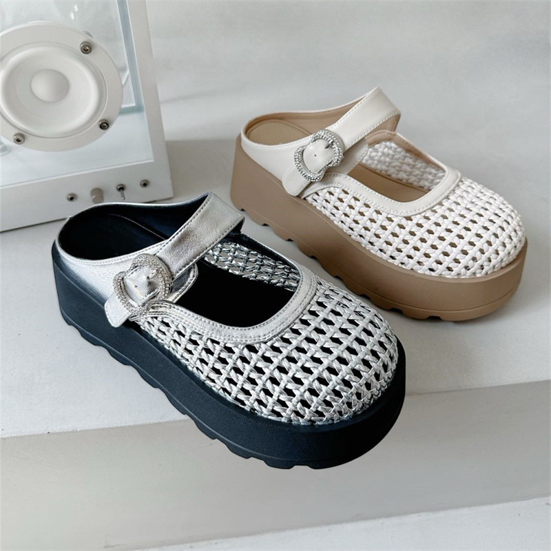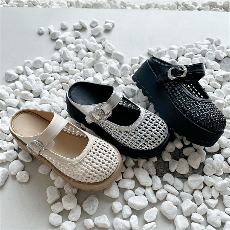 Di'ao 2025 여름 신작 여성용 짠 중공 발가락 슬리퍼 두꺼운 밑창 메리 제인 슈즈 슬립 온 홀 샌들