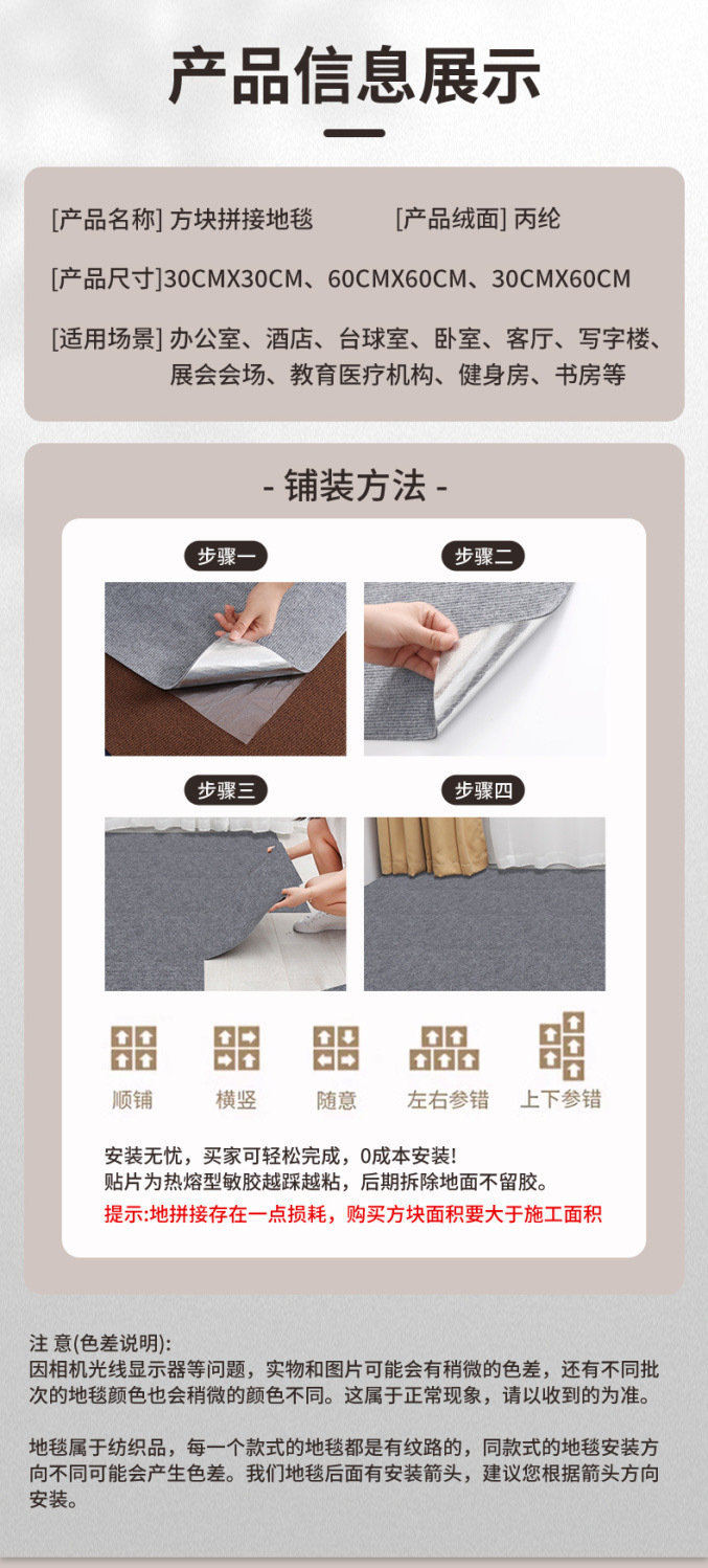 자체 접착 카펫 사무실 접합 사각형 상업용 대형 면적 전체 침실 시멘트 바닥 직접 바닥 매트스토어 가기