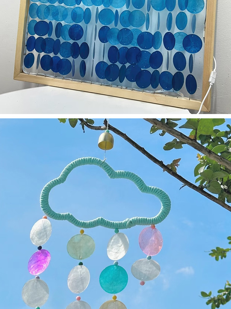 거울 쉘 액세서리 바람 종소리 diy 재료 패키지 어린이 창조적 인 수제 쉘 조각 펜던트 부모-자식 워밍업 활동 선물