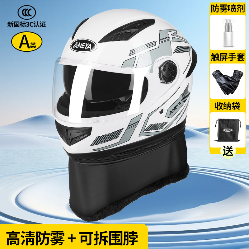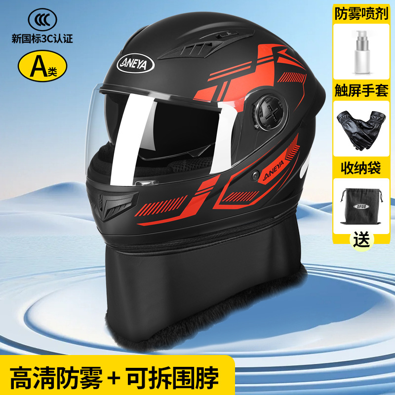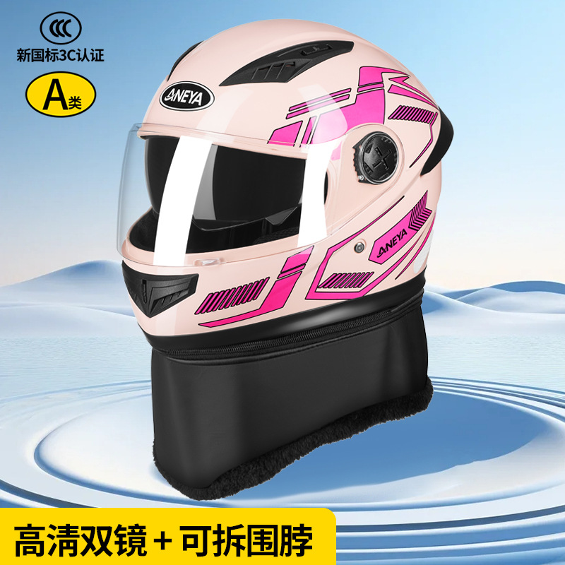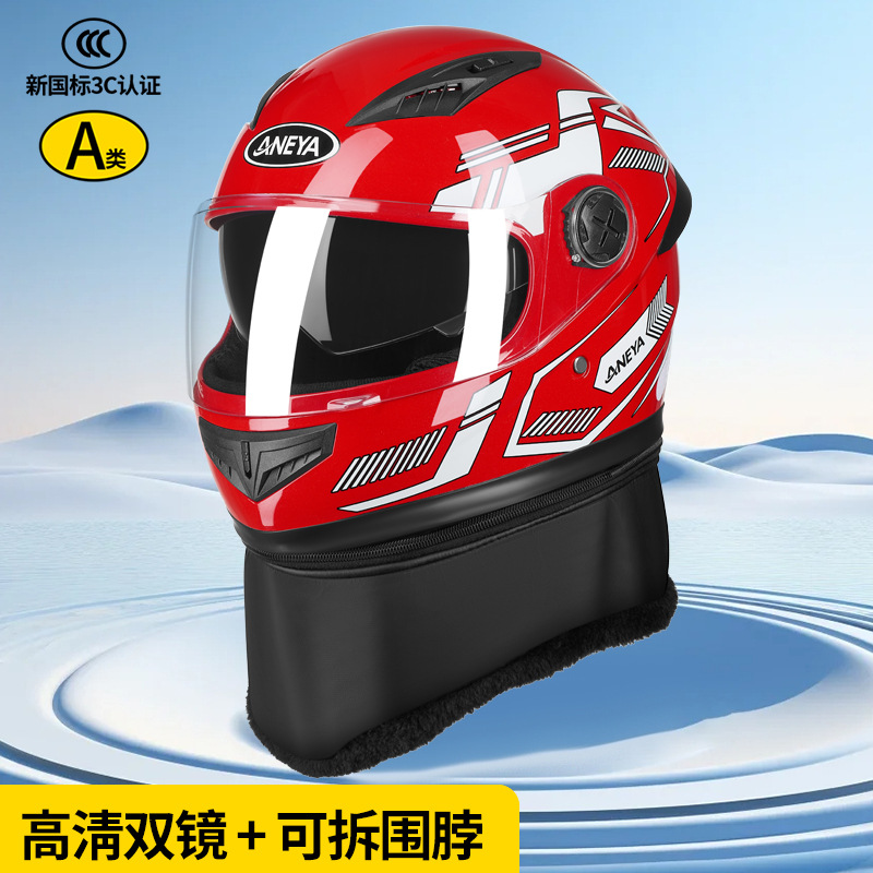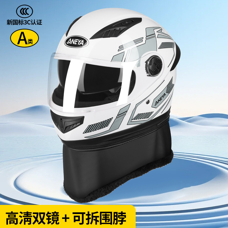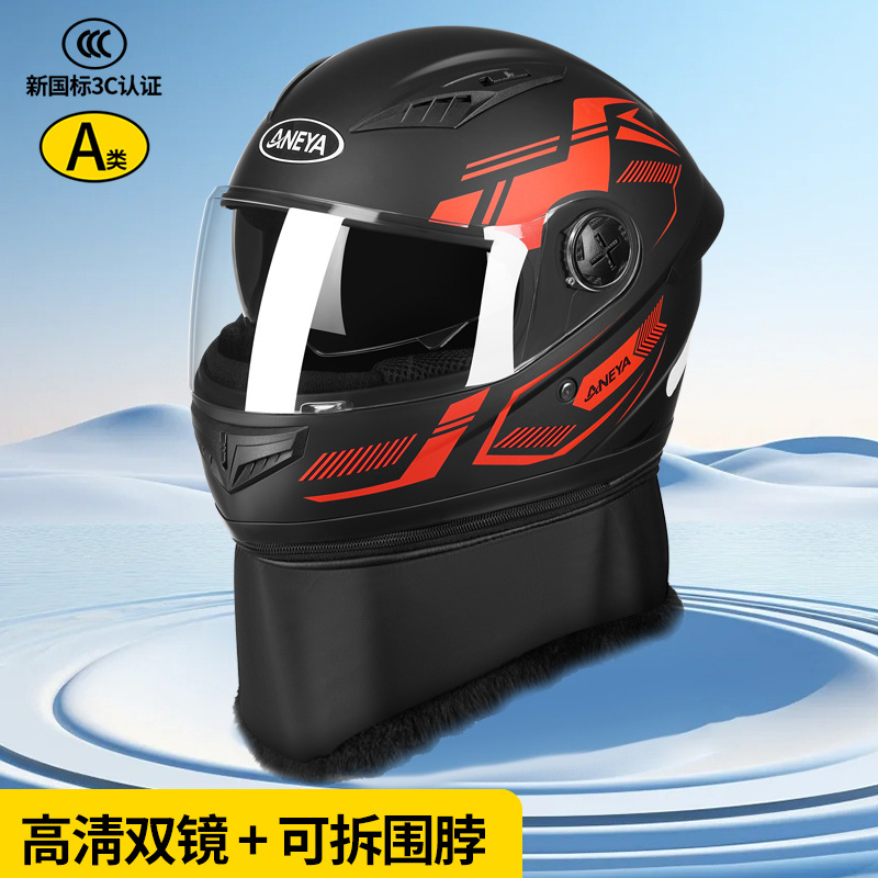 3c 인증 안전 오토바이 헬멧 남성용 풀 페이스 헬멧 겨울 따뜻한 전기 자동차 여성 가을, 겨울 방풍 겨울 스카프