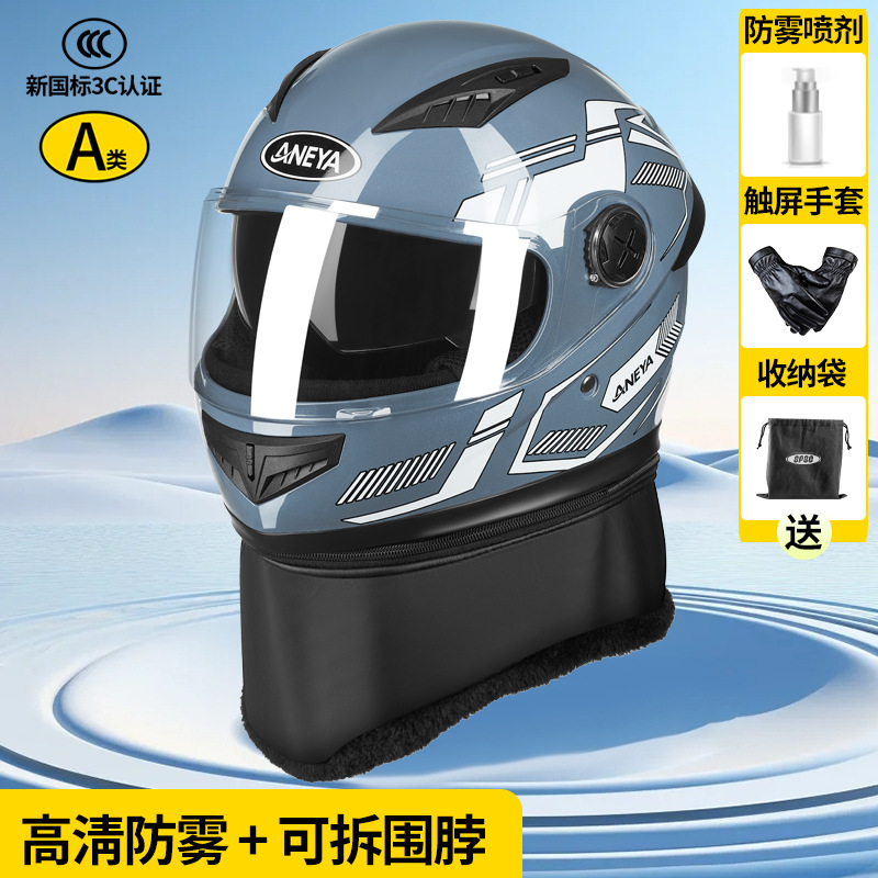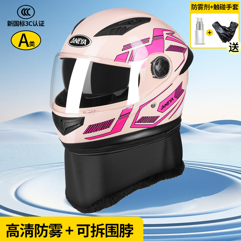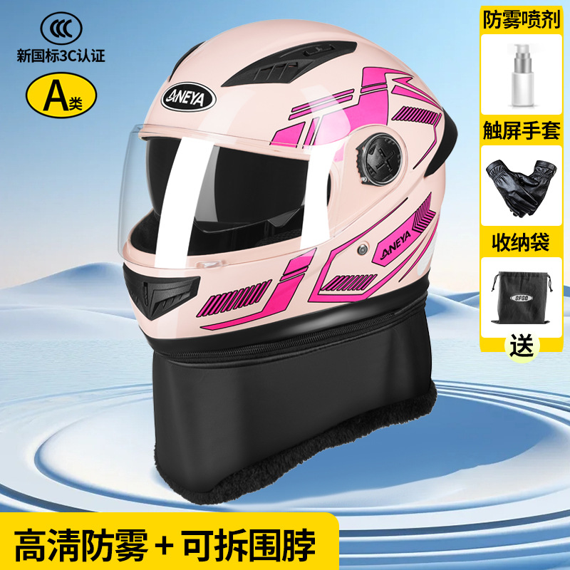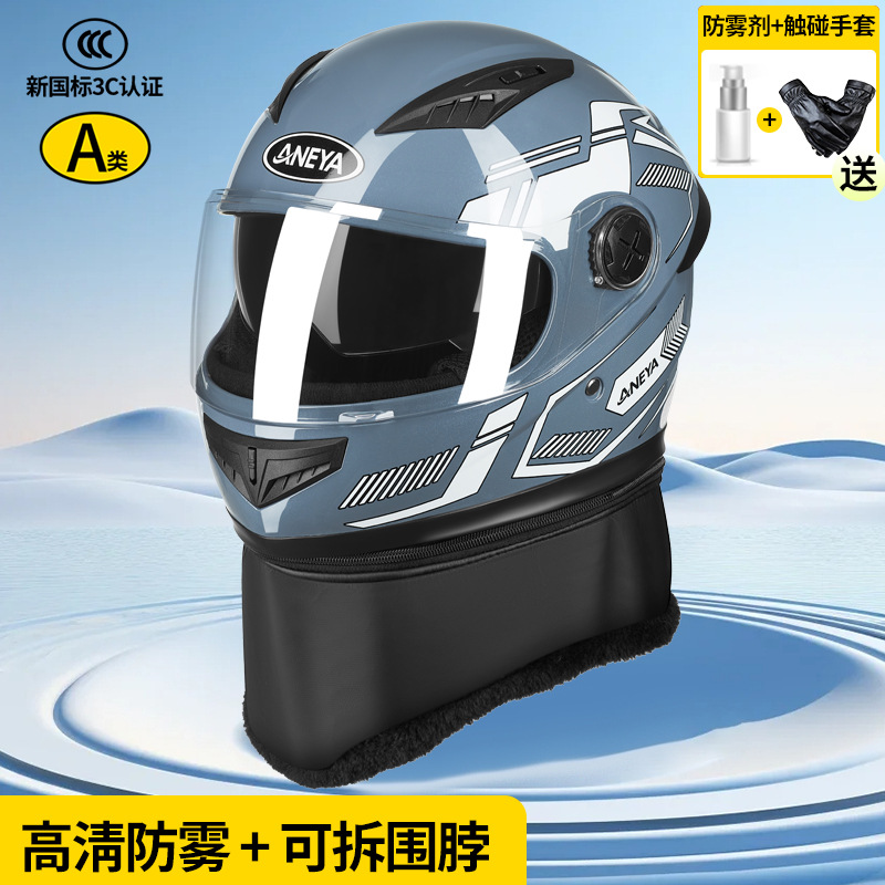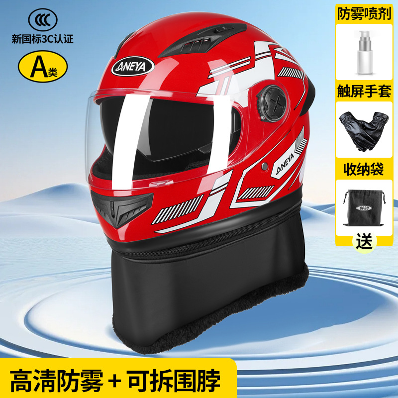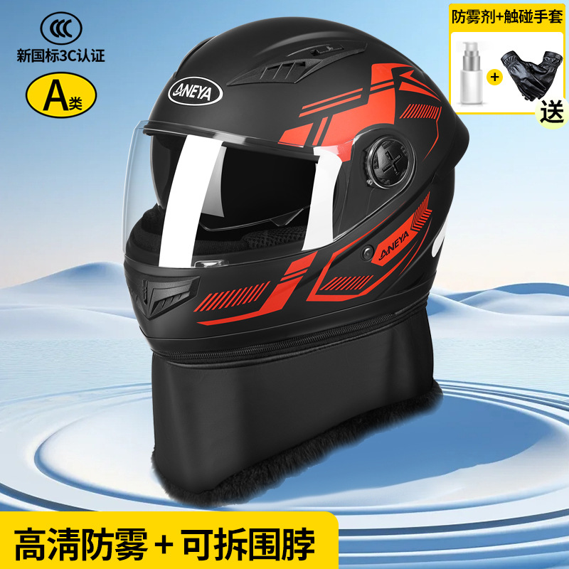 3c 인증 안전 오토바이 헬멧 남성용 풀 페이스 헬멧 겨울 따뜻한 전기 자동차 여성 가을, 겨울 방풍 겨울 스카프