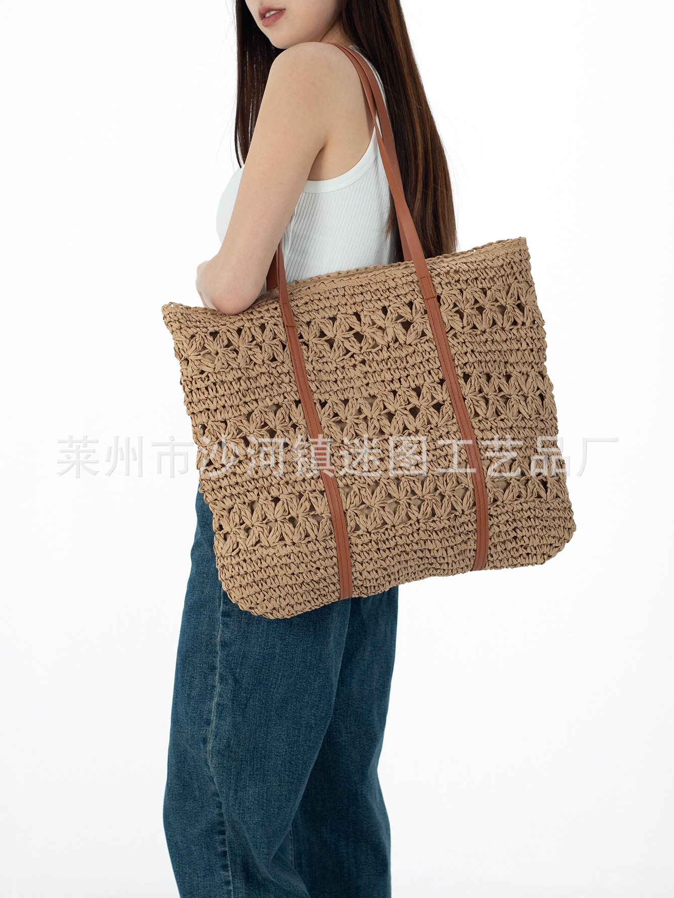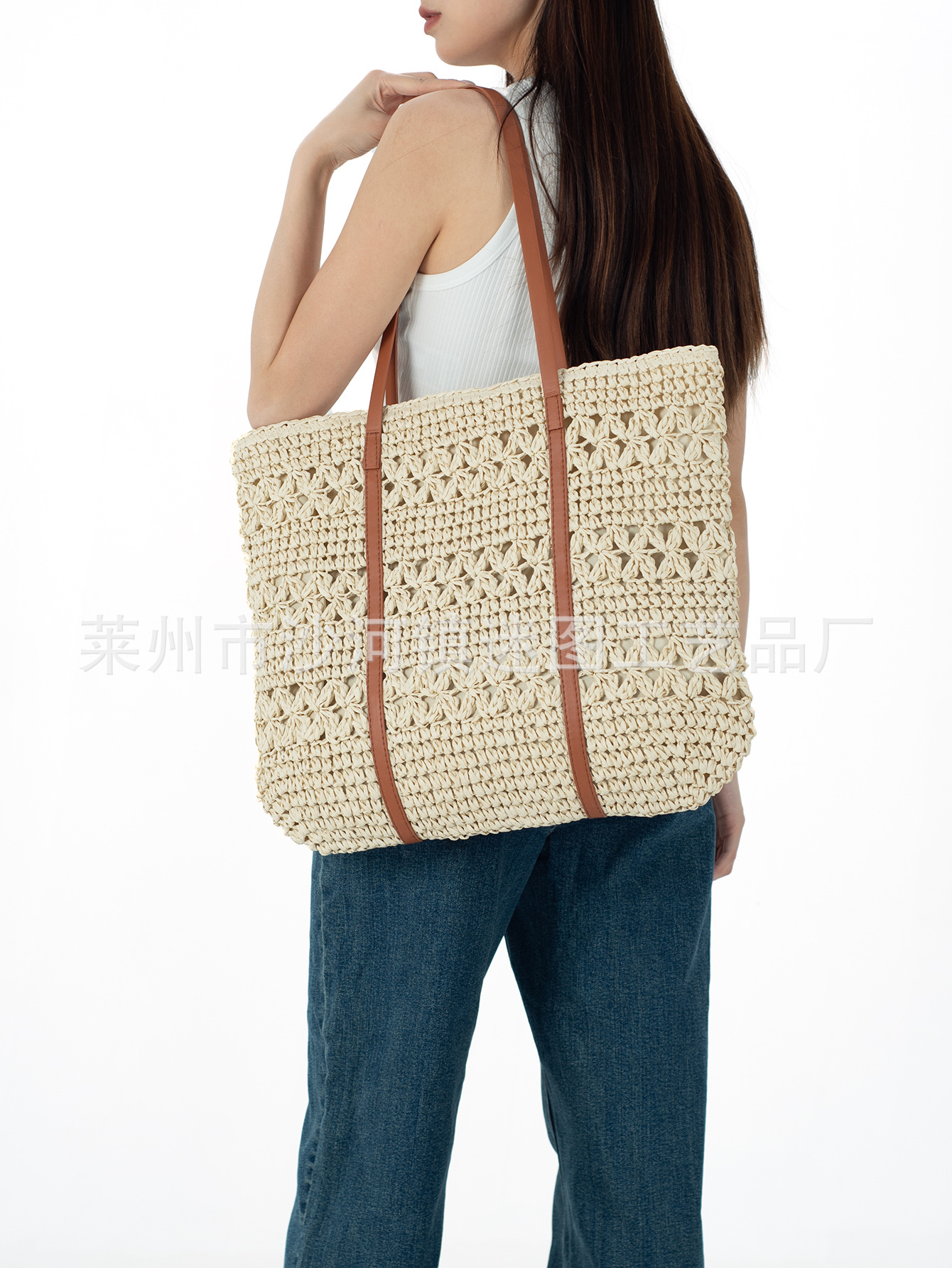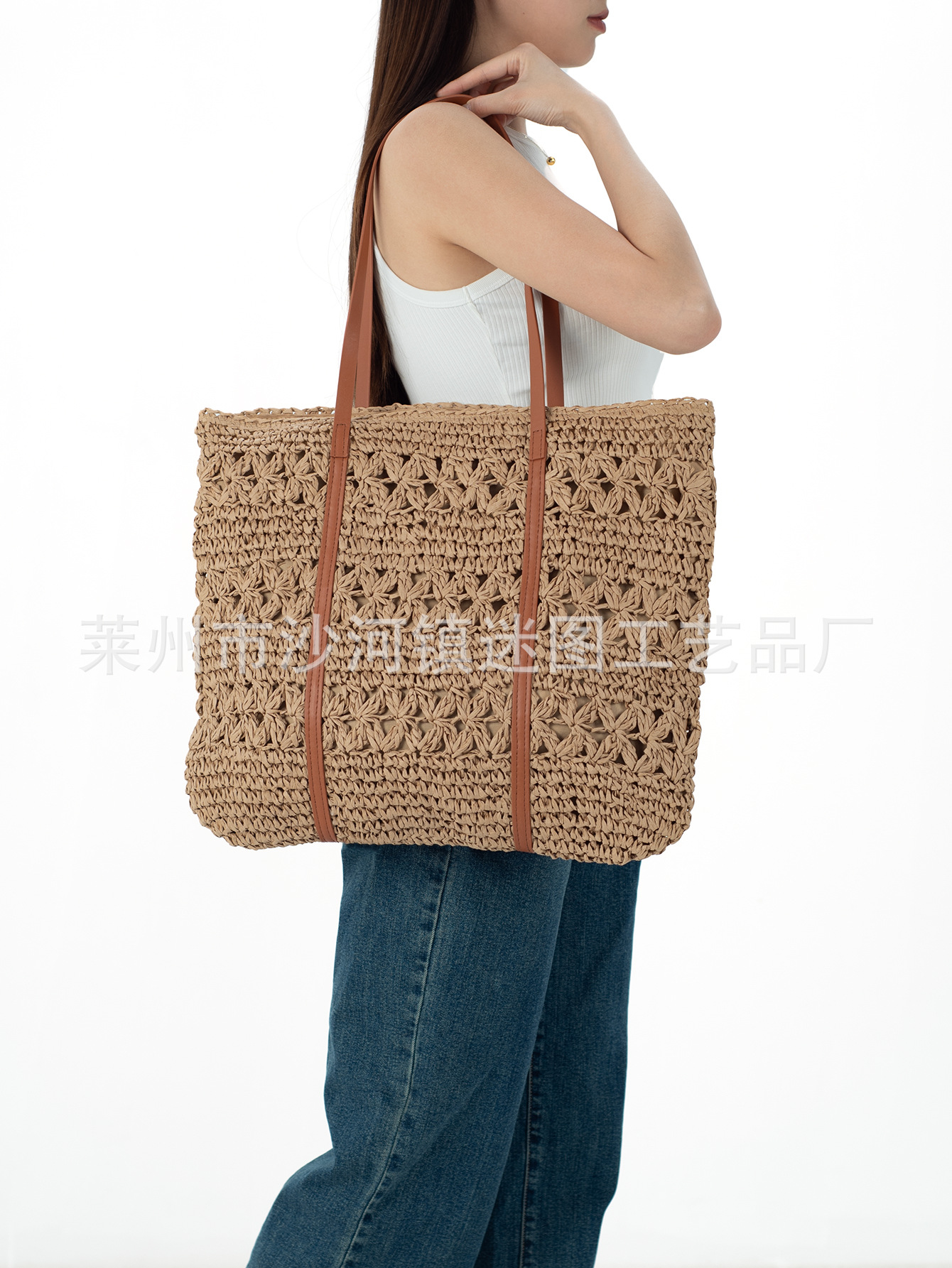 수제 밀짚 유럽과 미국 스타일의 대용량 중공 짠 캐주얼 쇼핑 해변 해변 휴가 여성용 숄더 토트 백