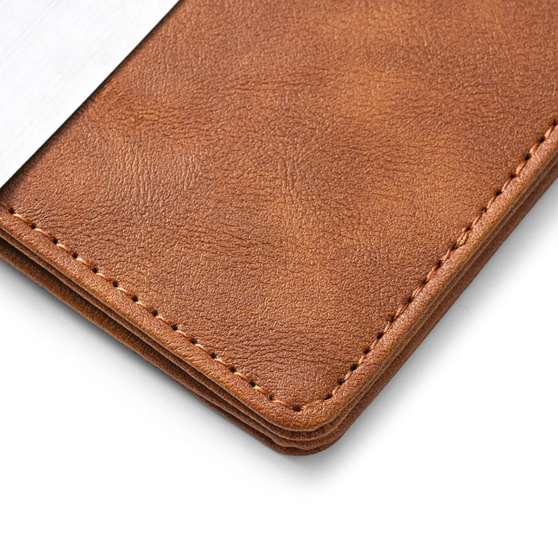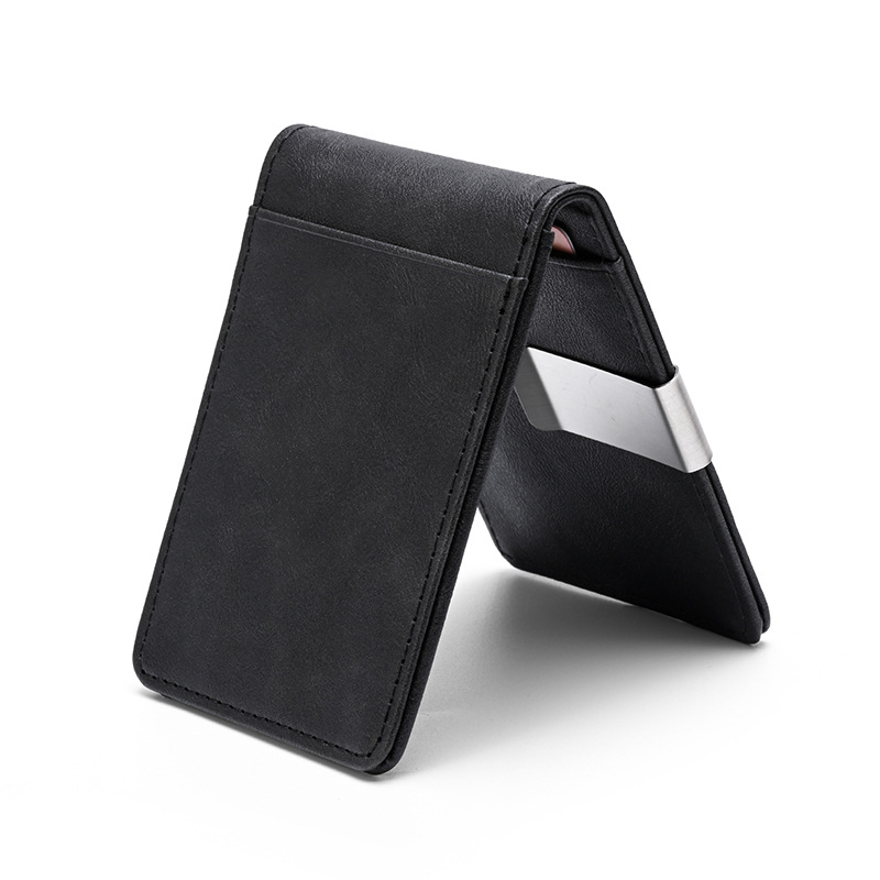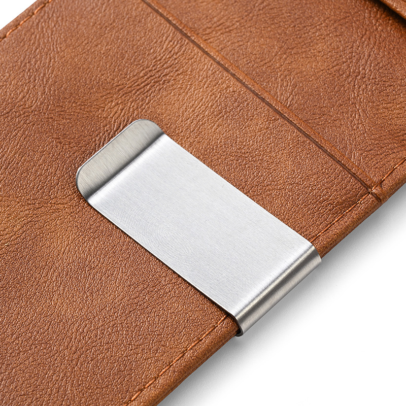 크로스보더 카드 가방 ID 가방 남자 미친 말 패턴 짧은 지갑 스테인레스 스틸 미국 달러 지갑 신용 카드 가방 PU