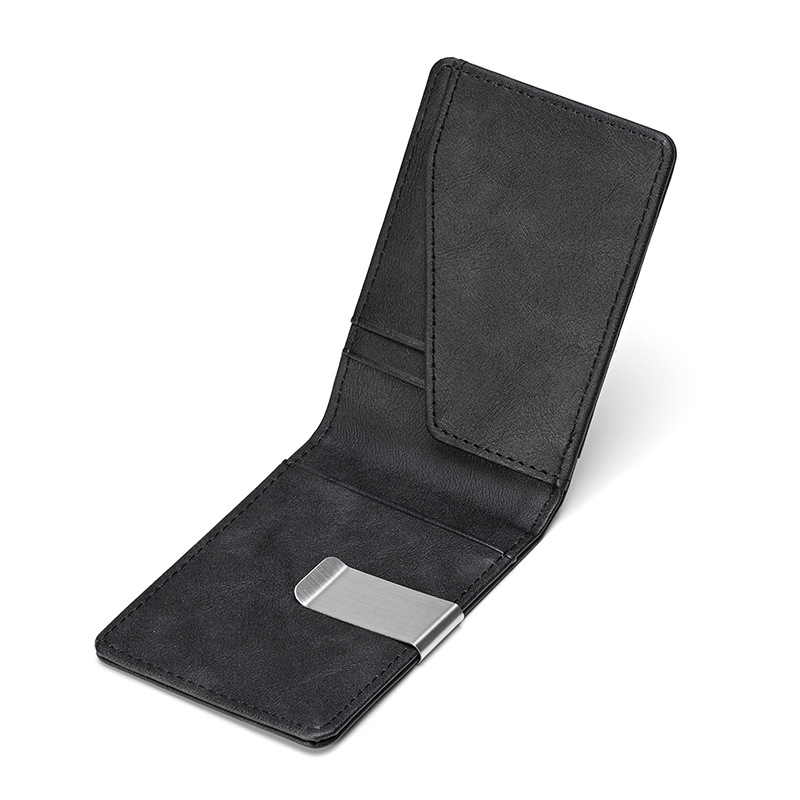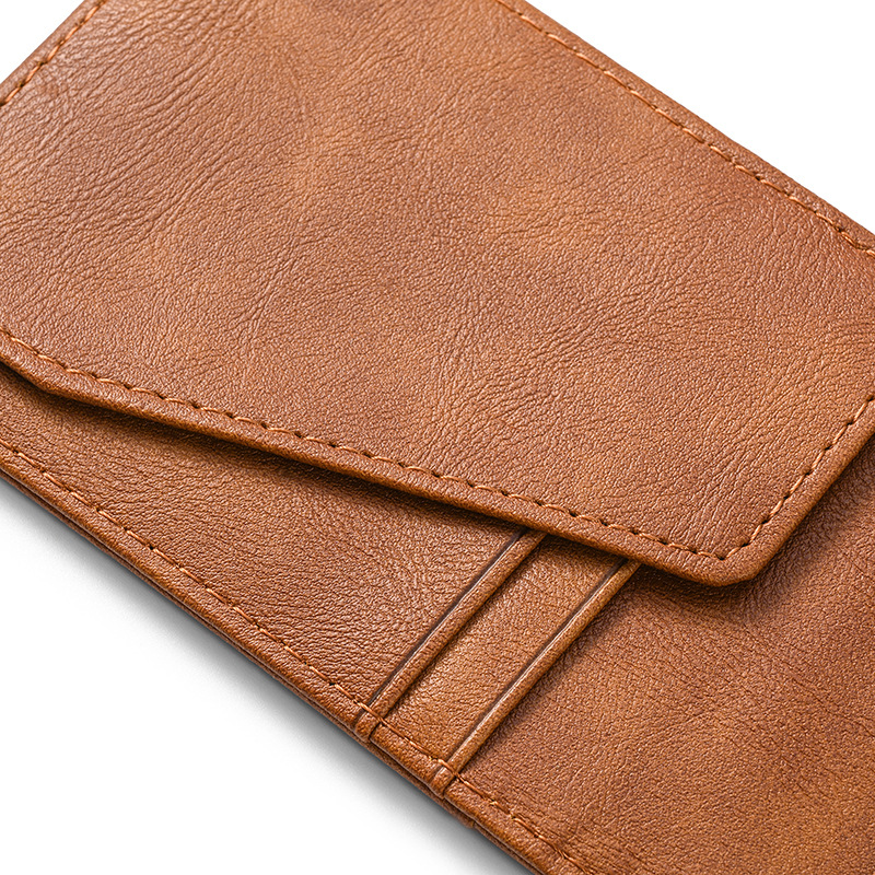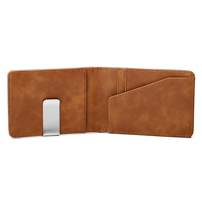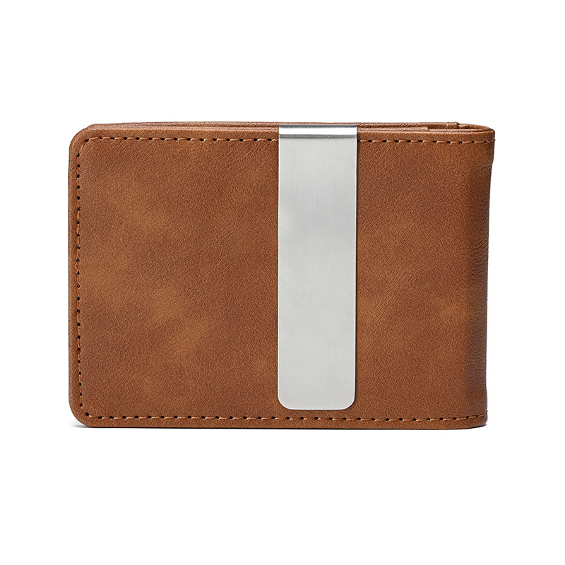 크로스보더 카드 가방 ID 가방 남자 미친 말 패턴 짧은 지갑 스테인레스 스틸 미국 달러 지갑 신용 카드 가방 PU스토어 가기