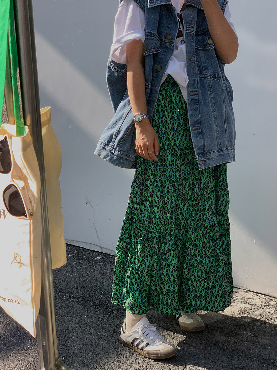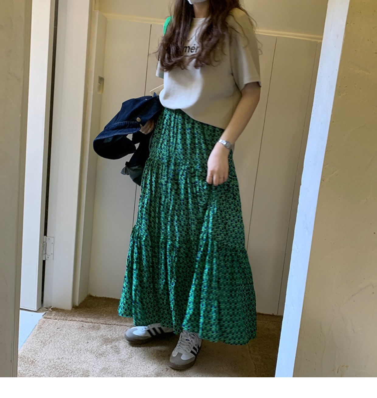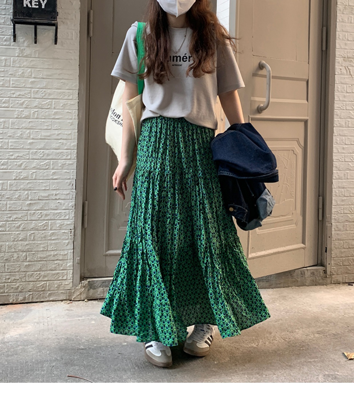 2026년 가을 신상 한국 스타일 신축성 있는 캐주얼 하이웨이스트 플리츠 롱 스커트 슬림핏 여성용 A라인 스커트스토어 가기