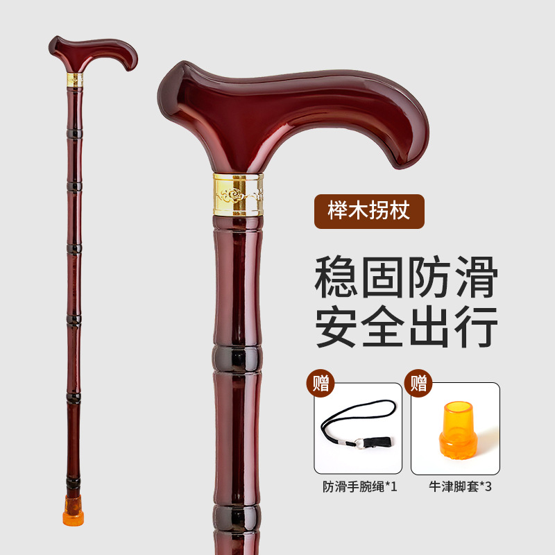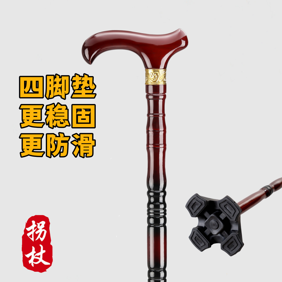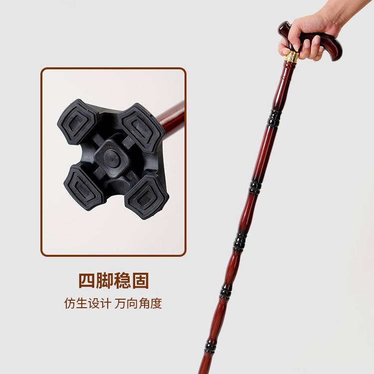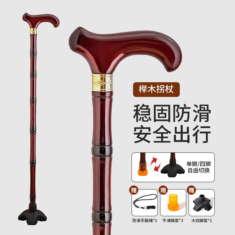 노인을 위한 공장 직접 공급 나무 지팡이, 4개의 미끄럼 방지 나무 지팡이, 노인을 위한 튼튼하고 가벼운 등산 지팡이