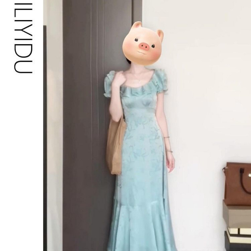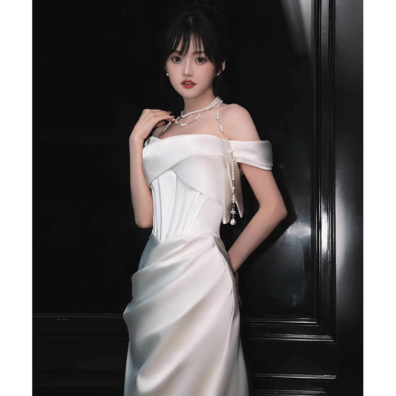 여성용 화이트 이브닝 드레스, 하이엔드, 하이엔드, 라이트 럭셔리, 니치 프렌치 드레스, 여름 원숄더 새틴 스커트스토어 가기