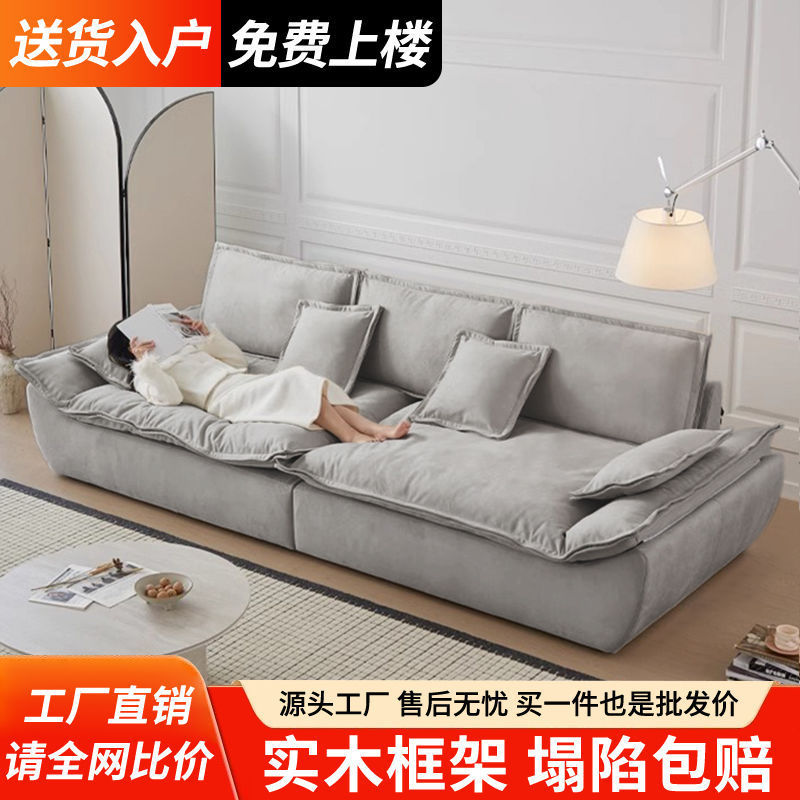 크림색 범선 대형 깊은 소파 거실 작은 아파트 라이트 럭셔리 하이 엔드 3인용 직선형 홈 벨벳 소파