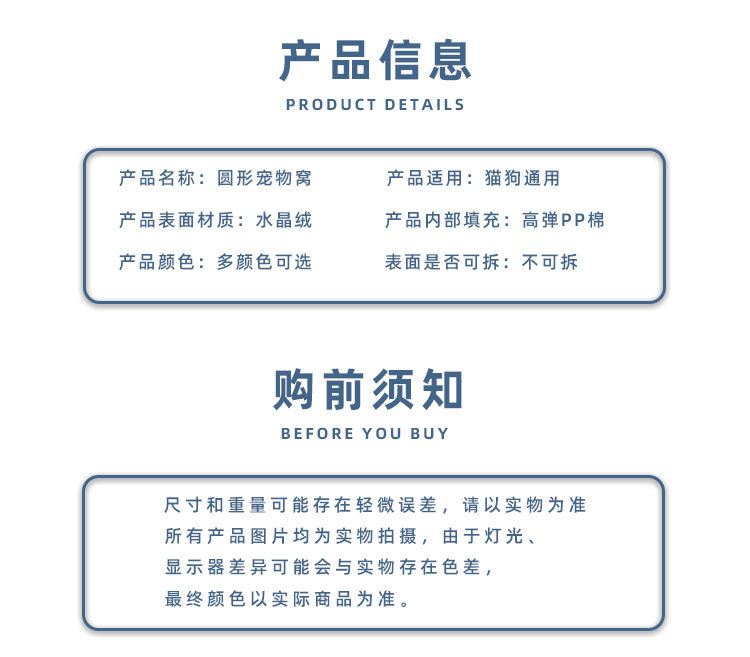 귀여운 원형 두꺼운 소형견용 따뜻한 애완동물 침대, 배색 고양이 침대, 미끄럼 방지 바닥, 사계절용 강아지 매트, 강아지 케이지스토어 가기
