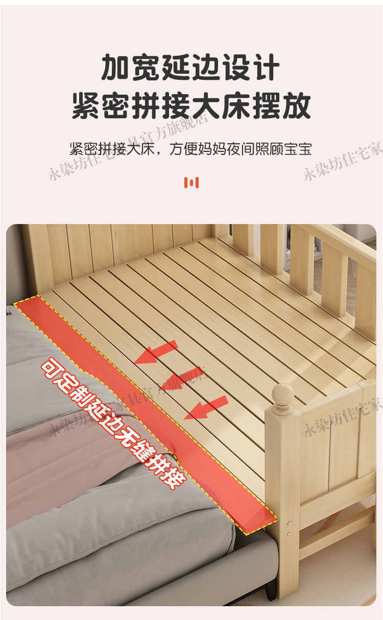 단단한 나무 아기 접합 침대, 넓은 안전 가드 포함, 소년 소녀 싱글 침대 옆 침대, 어린이 접합 대형 침대스토어 가기