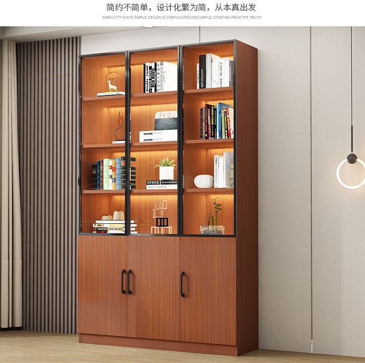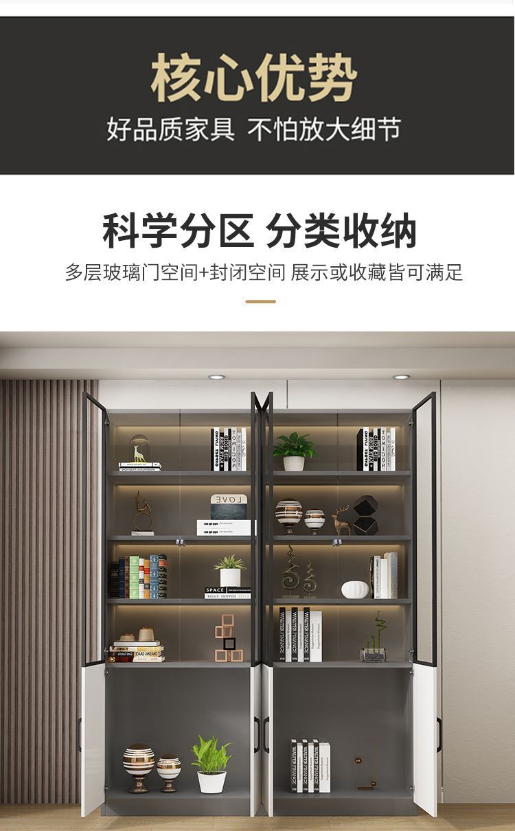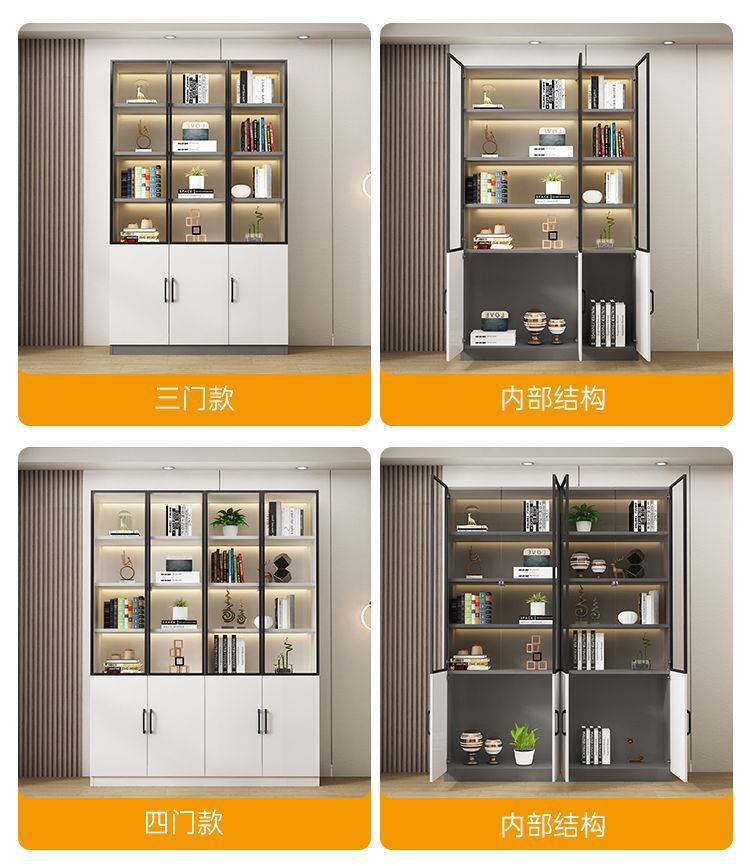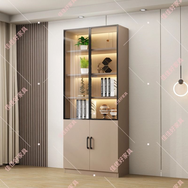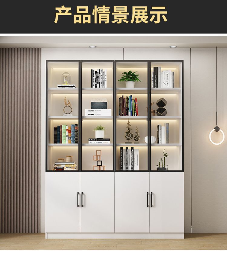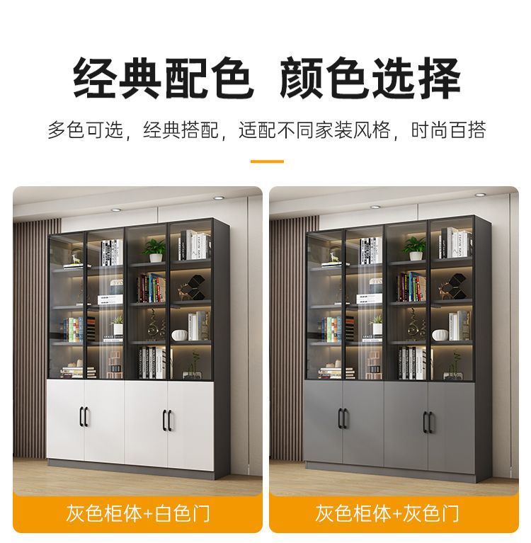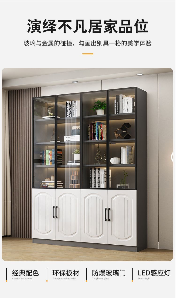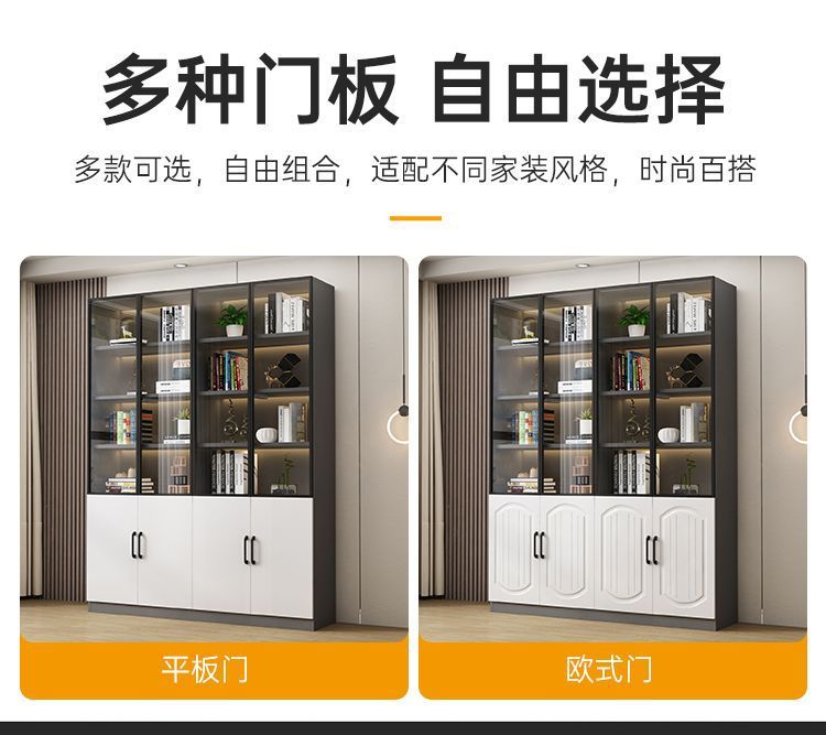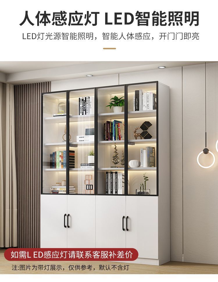 책장 유리문 홈 디스플레이 캐비닛 통합 연구 책장 바닥 스탠딩 사무실 파일 캐비닛 방진 장식품 캐비닛