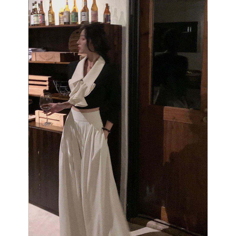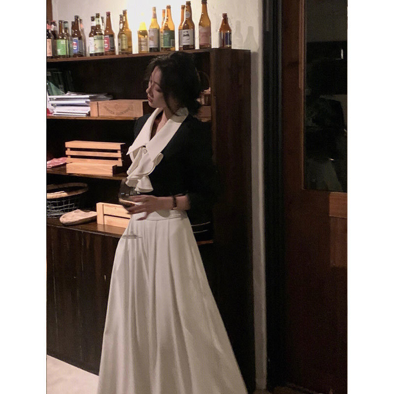 • 검은색 상의 + 흰색 치마바지 [그림 컬러 슈트]