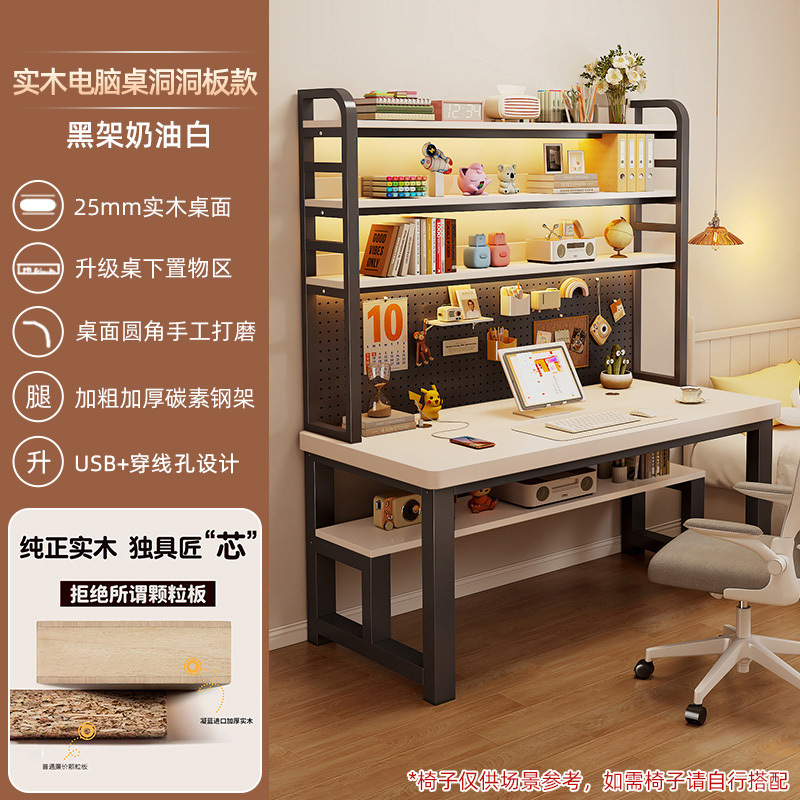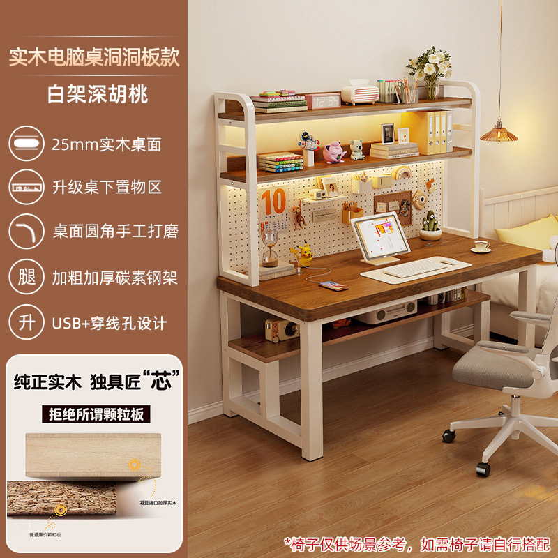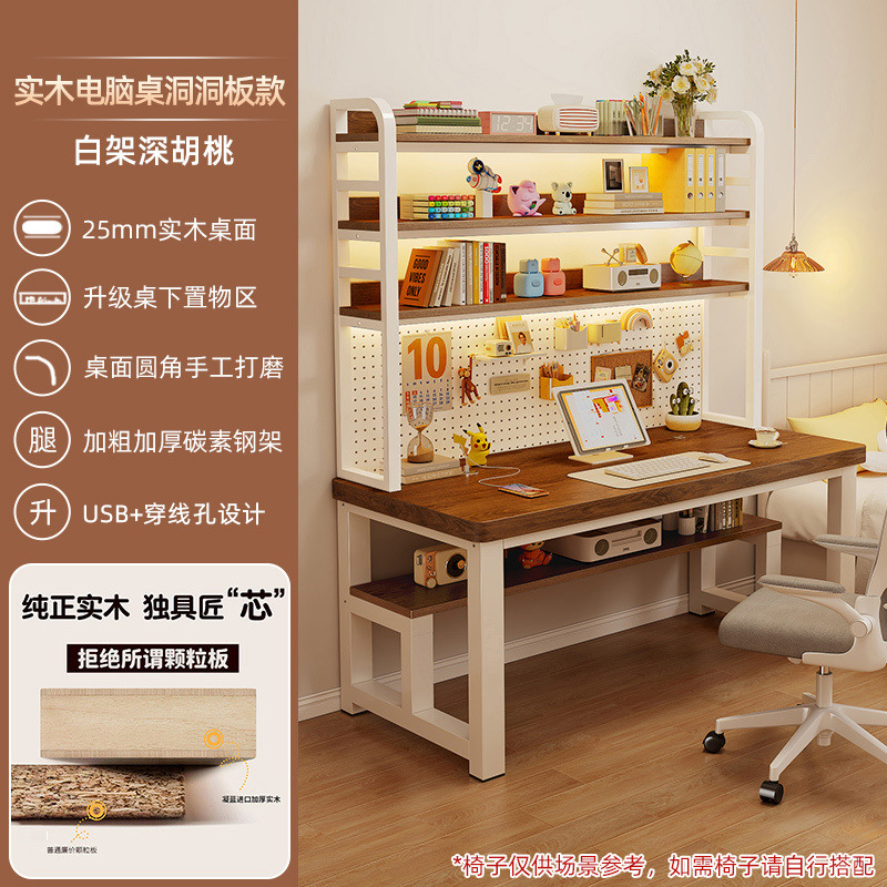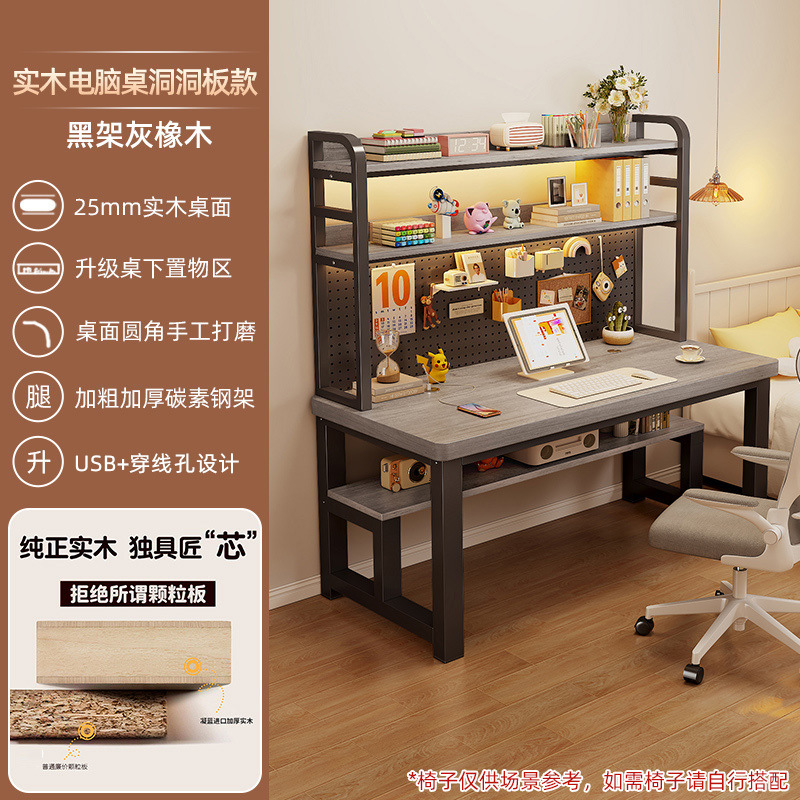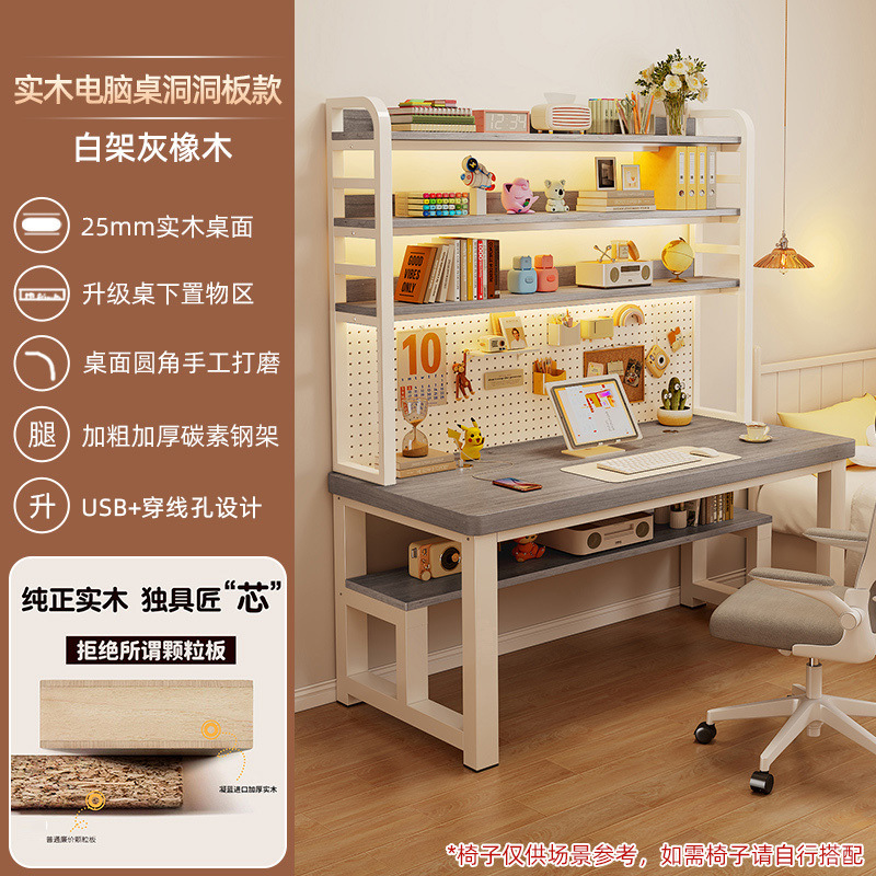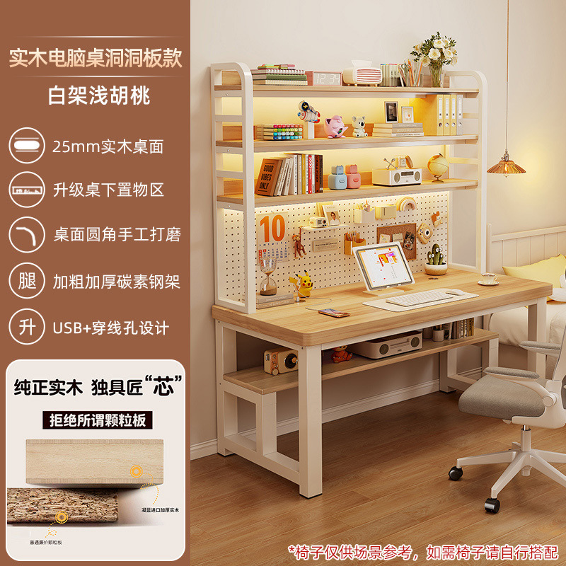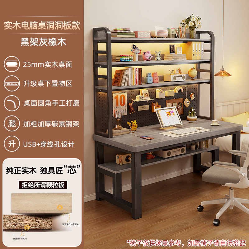 컴퓨터 책상 단단한 나무 학생 홈 데스크 학습 테이블 조합 책상 구멍 책장 통합 침실 테이블 쓰기스토어 가기
