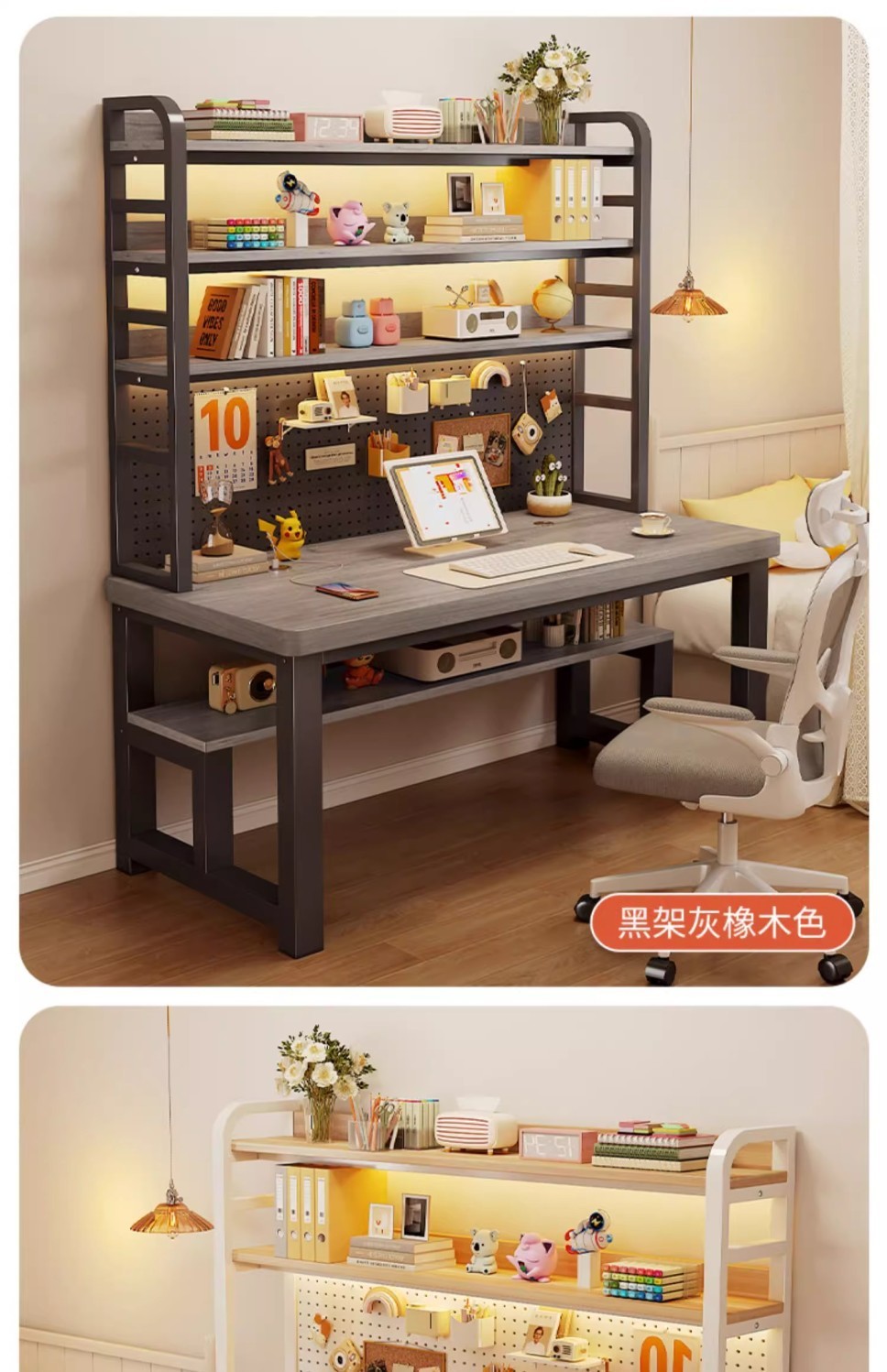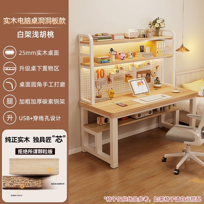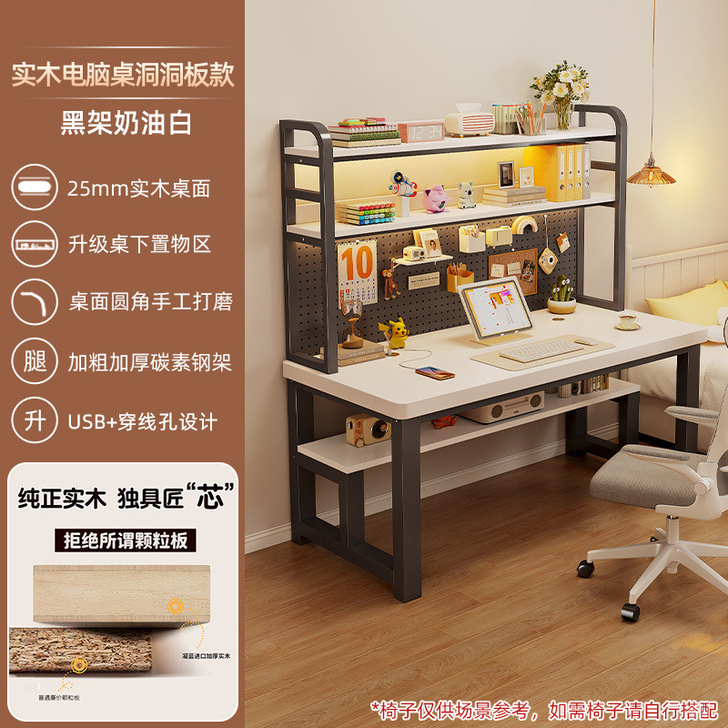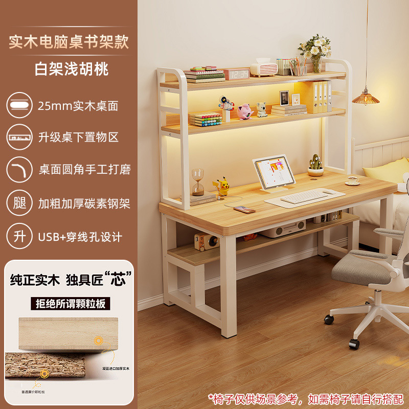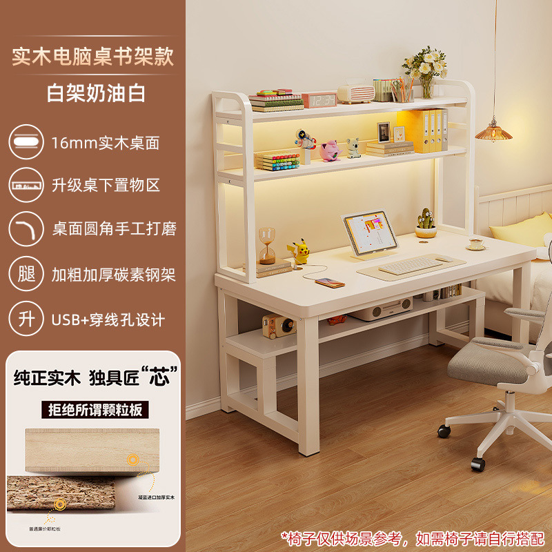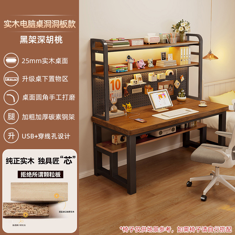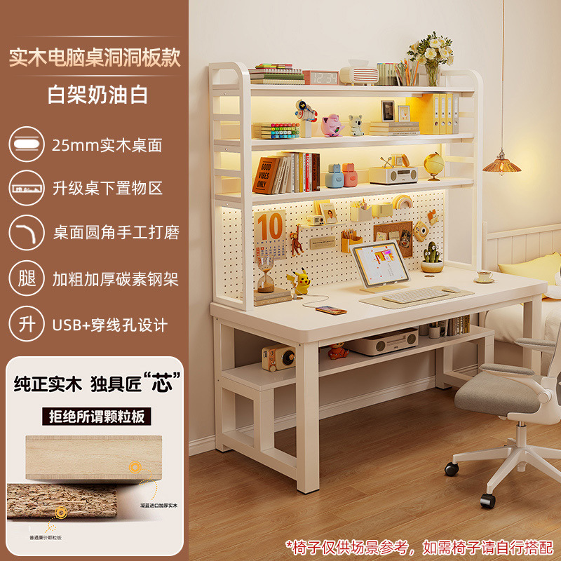 컴퓨터 책상 단단한 나무 학생 홈 데스크 학습 테이블 조합 책상 구멍 책장 통합 침실 테이블 쓰기스토어 가기