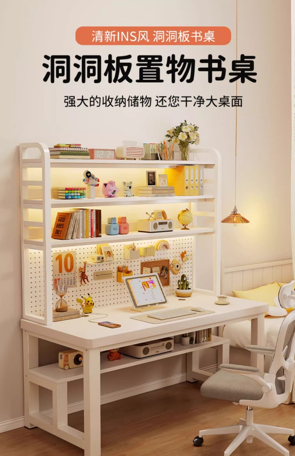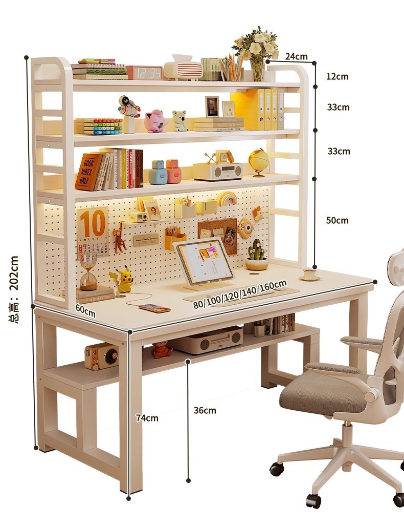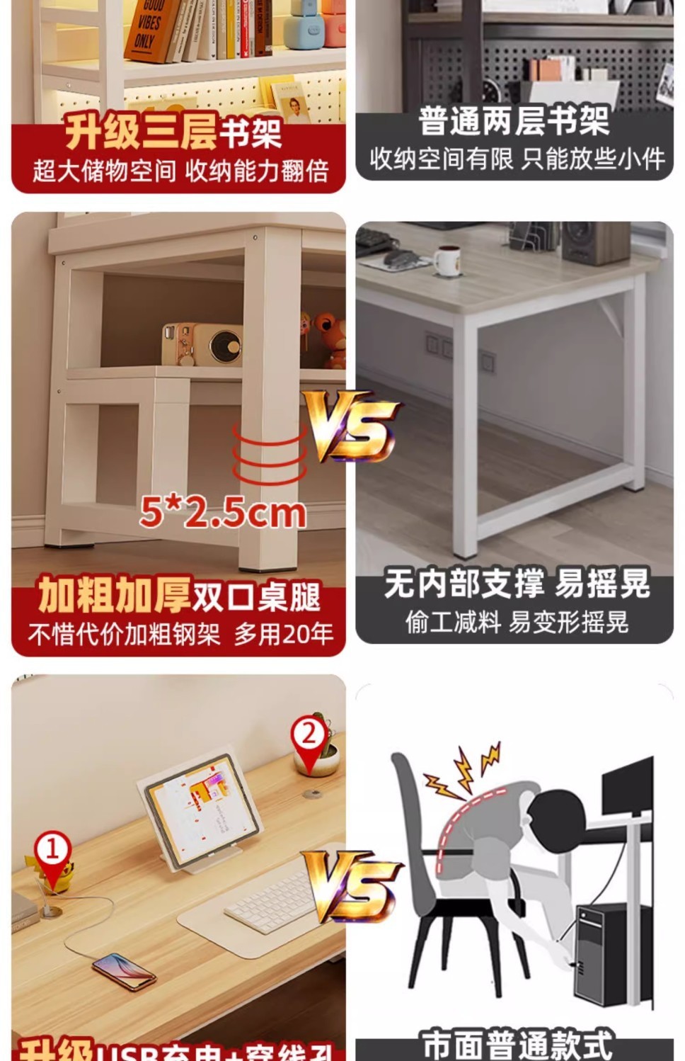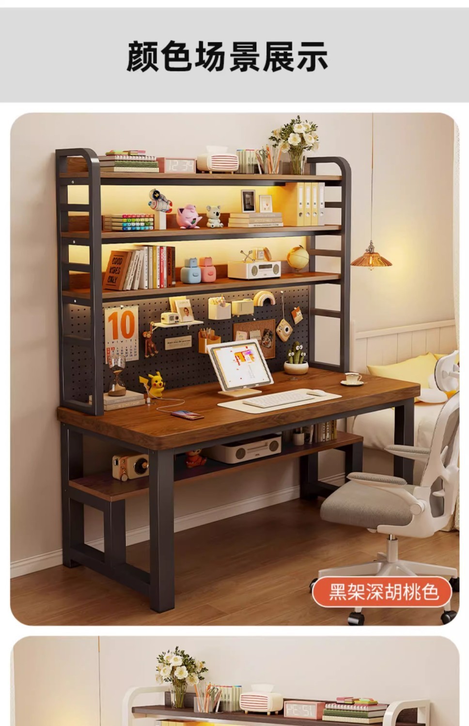 컴퓨터 책상 단단한 나무 학생 홈 데스크 학습 테이블 조합 책상 구멍 책장 통합 침실 테이블 쓰기스토어 가기