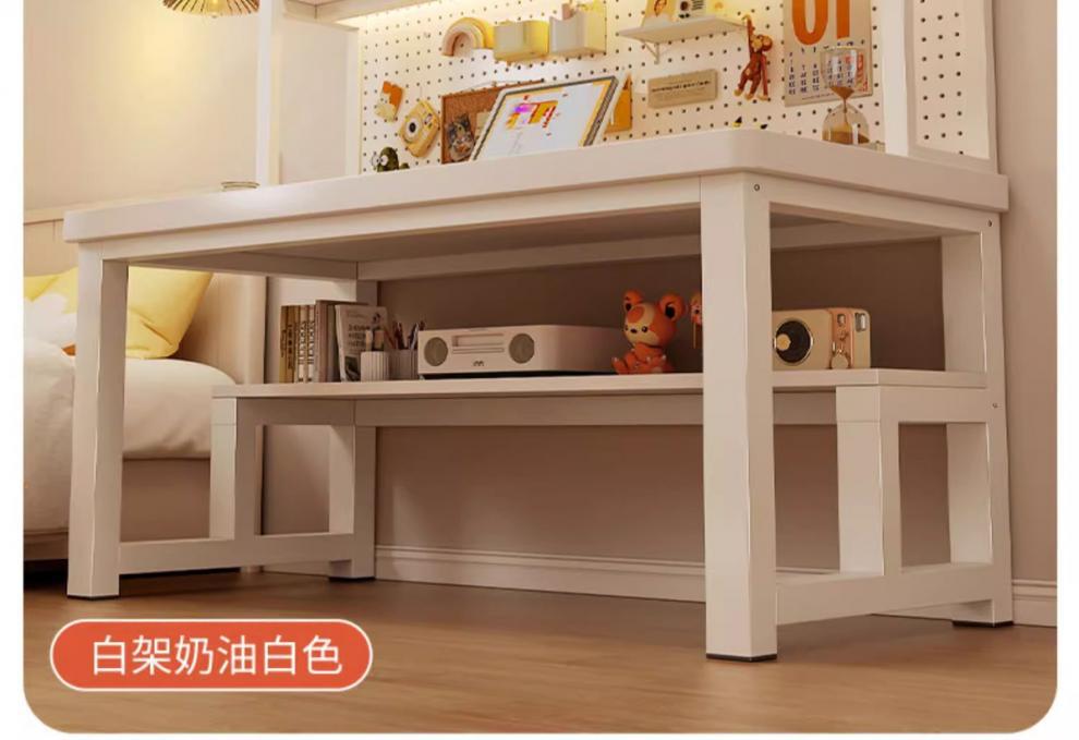 • 2단 책장 모델 [16MM 원목 데스크탑] 크림 화이트 + 화이트 선반
