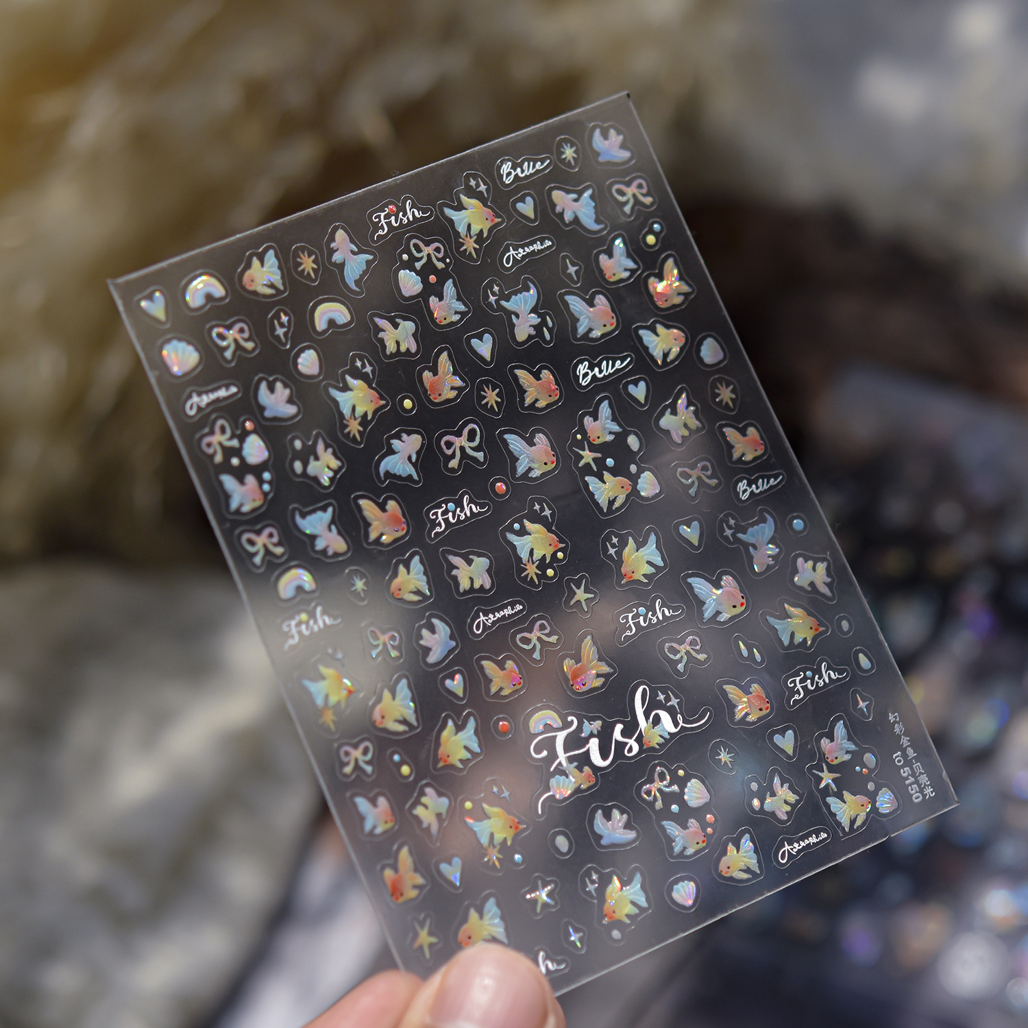 Tomoni 쉘 라이트 네일 아트 스티커 인기있는 새로운 중국 스타일 네일 스티커 금붕어 스파크 네일 아트 보조 스티커