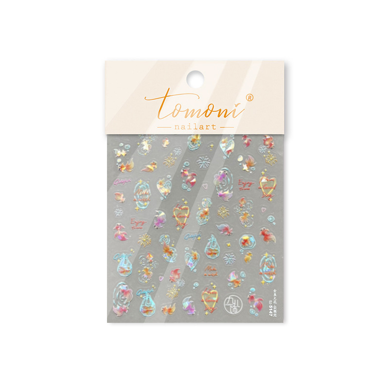 Tomoni 쉘 라이트 네일 아트 스티커 인기있는 새로운 중국 스타일 네일 스티커 금붕어 스파크 네일 아트 보조 스티커스토어 가기