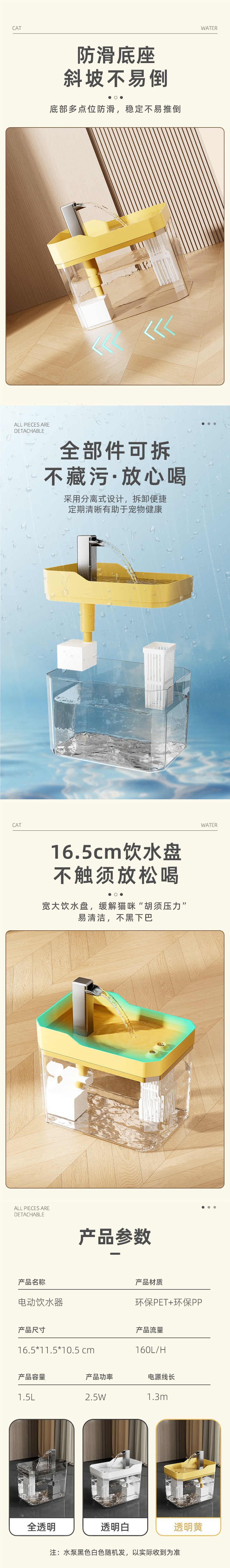 • 업그레이드 버전 [럭셔리 전자동 정수기] 1.5L 대용량, 봄 살구 노란색 [생수 순환] + 필터면 1개