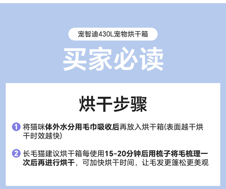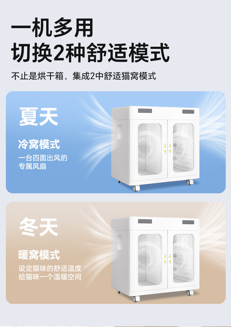 • 고양이와 강아지에게 실용적인 200L 대용량 건조박스 15-25kg [1400W + 왕산소살균 + 자동털수집 + 음이온 + 고양이와 강아지 둥지]