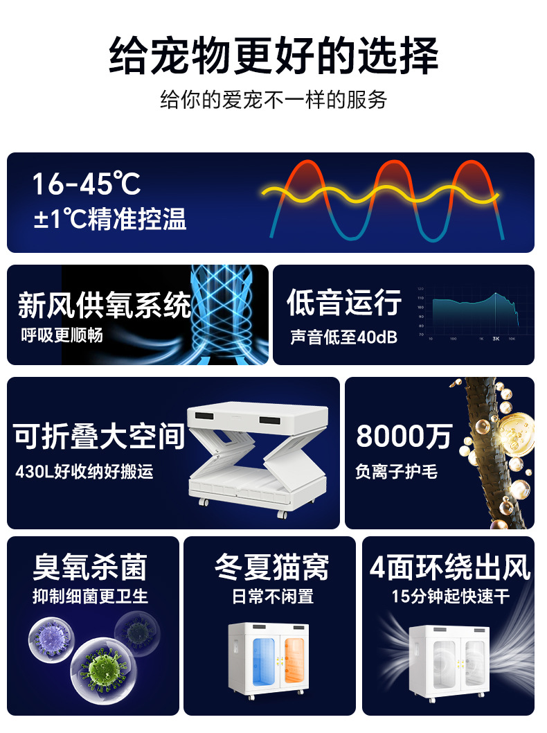 • 대형견에게 적합한 신형 430L 대용량 접이식 55kg [듀얼 존 독립 제어-2800W 고출력-산소 소독 음이온]