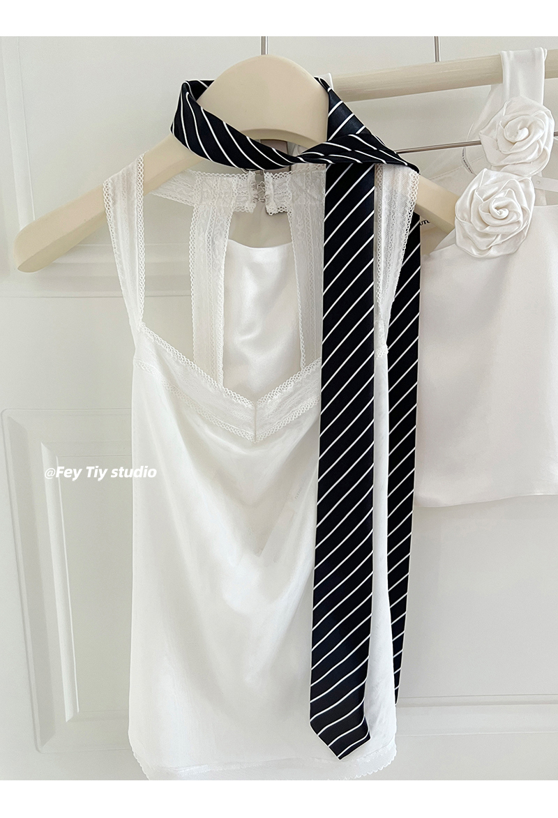 Feytiy 간단한 줄무늬 넥타이 맞춤형 벨트 복고풍 y2k 뜨거운 소녀 좁은 긴 실크 스카프 대학 한국어 버전 봄과 여름스토어 가기