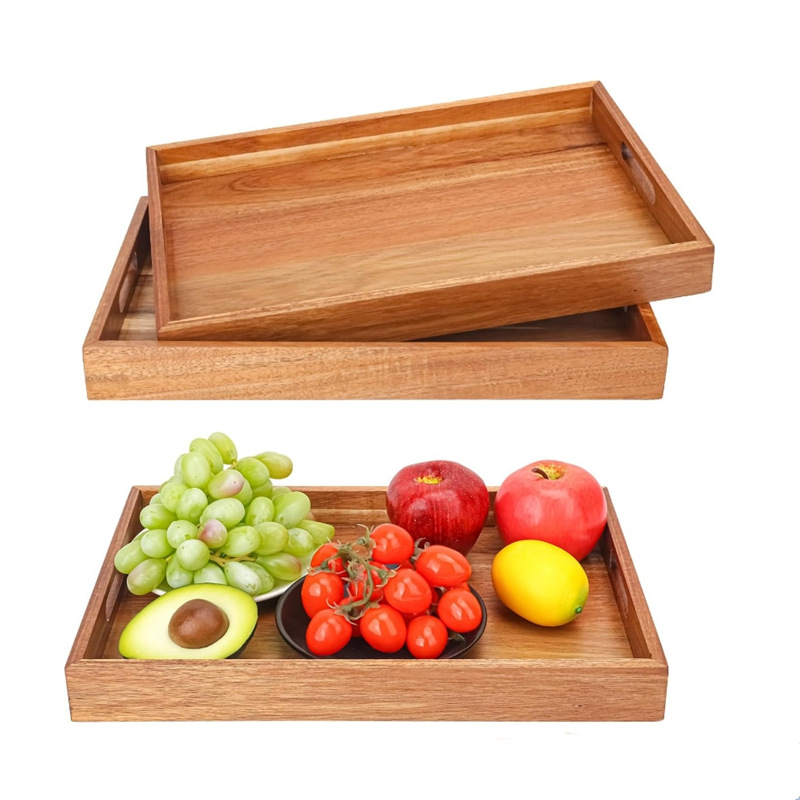 일본식 나무 트레이 차 트레이 스낵 트레이 아카시아 나무 직사각형 차 컵 보관함 단단한 나무 이중 귀 나무 트레이