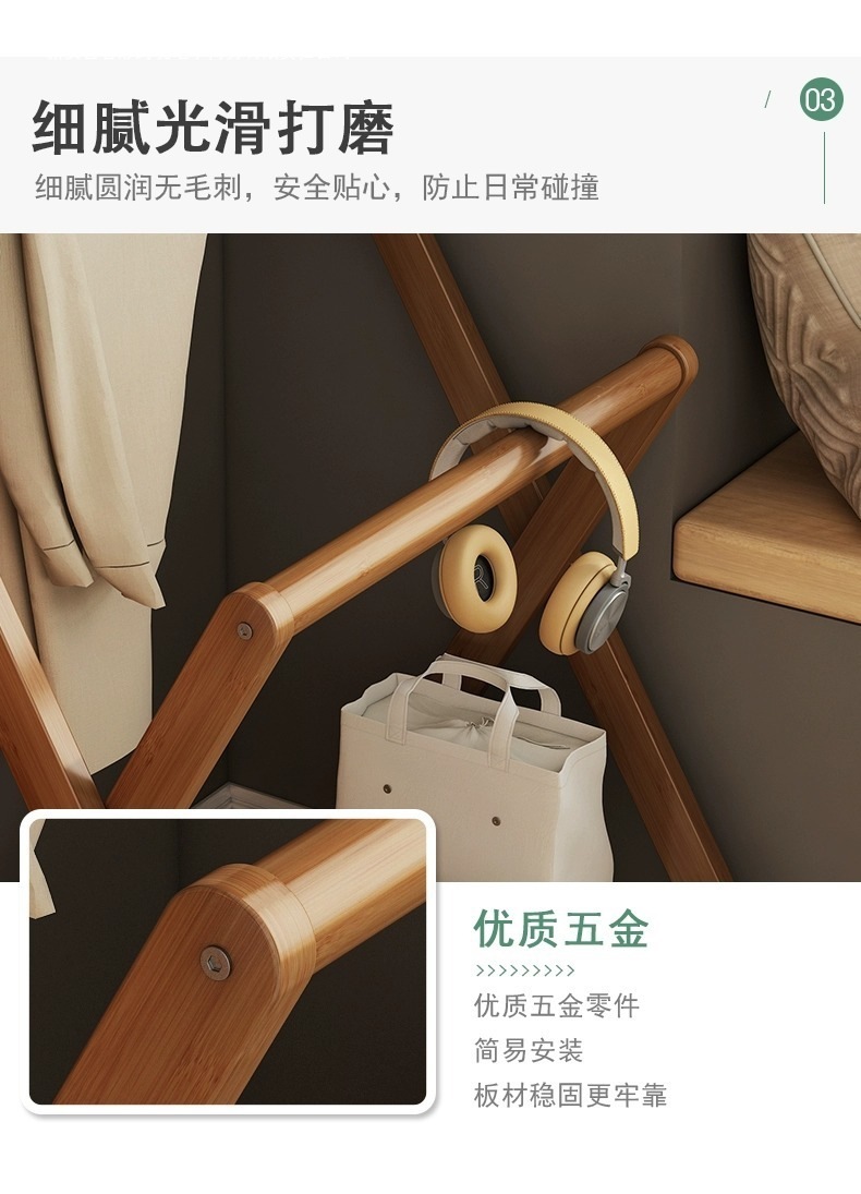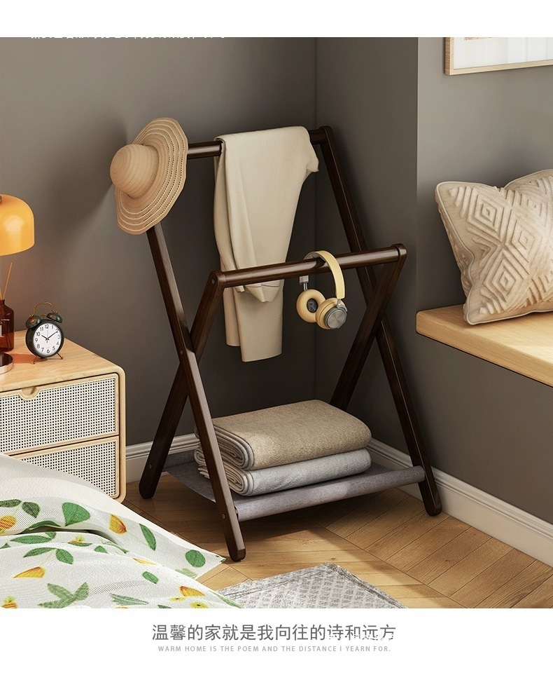 침대 옆 코트 랙 바닥 접이식 소형 단단한 나무 침실 밤에 잠을 자고 임시 옷 보관 북유럽 옷걸이스토어 가기