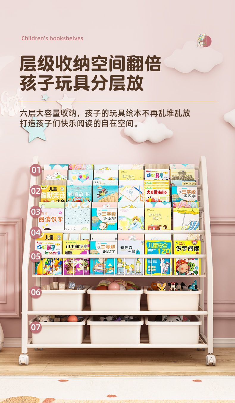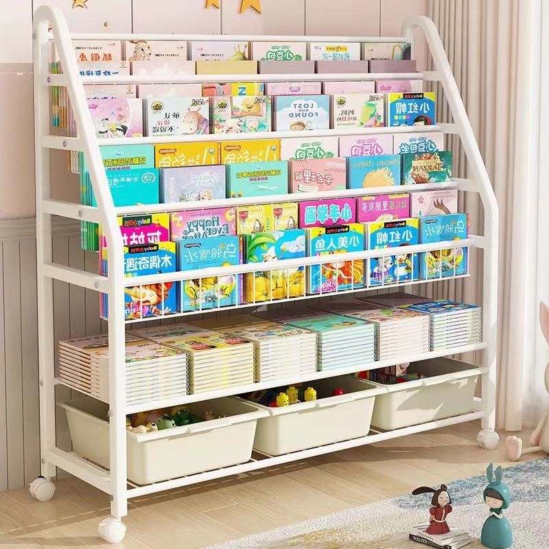 도매 어린이 책장 이동식 저장 그림책 랙 독서 랙 다층 잡지 저장 랙 바닥에 서 있는 책장 저장스토어 가기