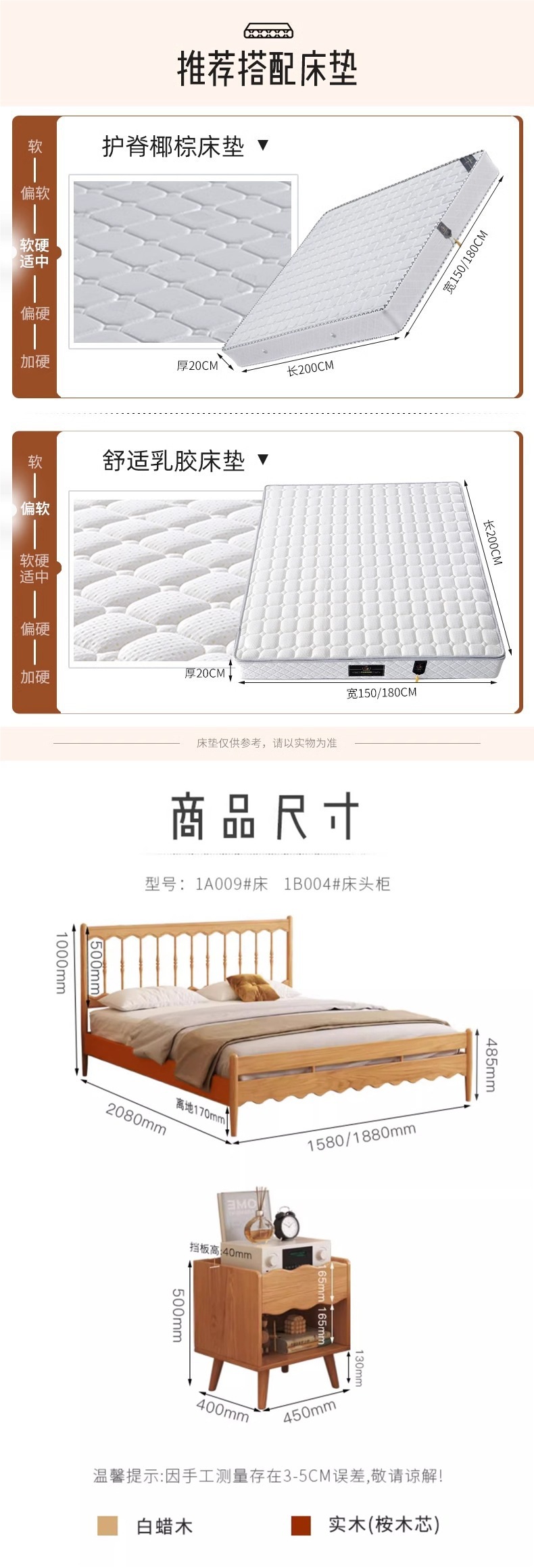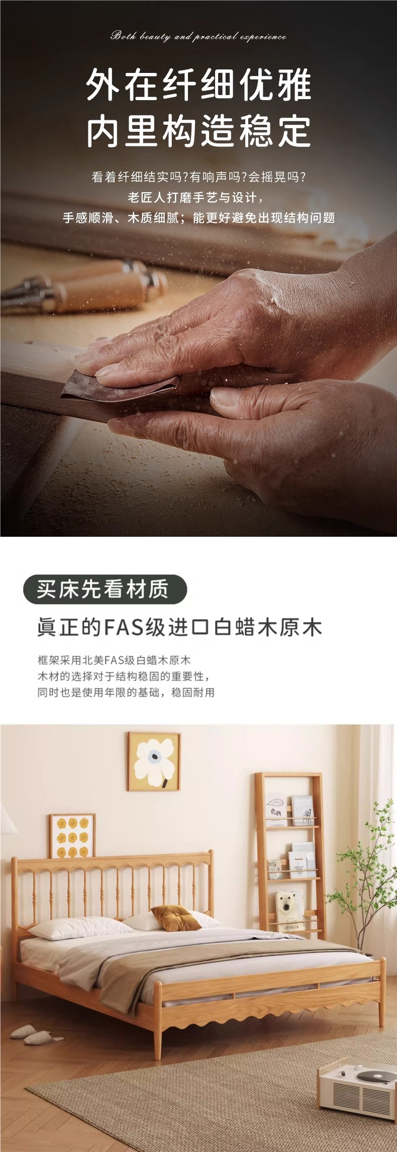 아스파라거스 원목 침대 북유럽 마스터 침실 더블 1.5m 심플 가구 일본식 통나무 스타일 윈저 웨딩 침대스토어 가기
