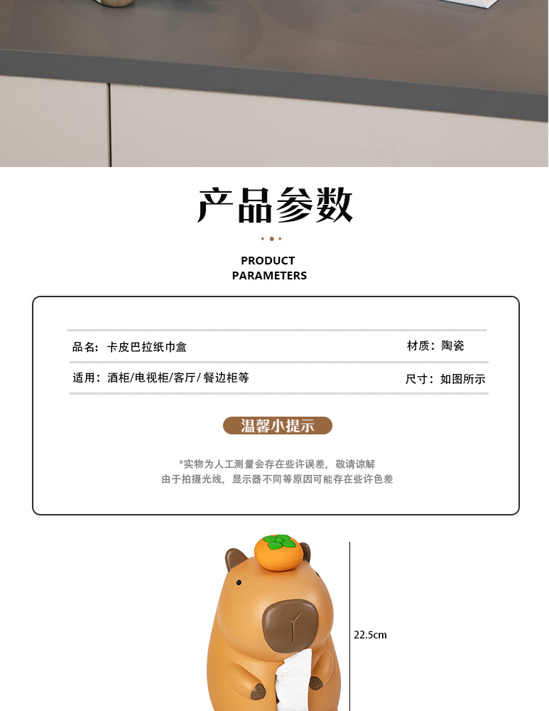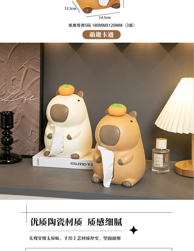 재미 있고 귀여운 세라믹 Kapibara 티슈 박스 크리 에이 티브 장식품 홈 거실 커피 테이블 식탁 탁상 티슈 박스스토어 가기