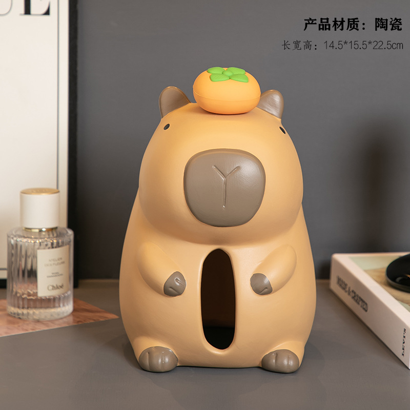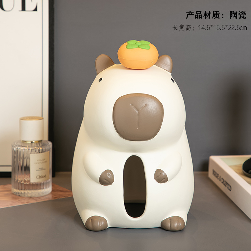 재미 있고 귀여운 세라믹 Kapibara 티슈 박스 크리 에이 티브 장식품 홈 거실 커피 테이블 식탁 탁상 티슈 박스