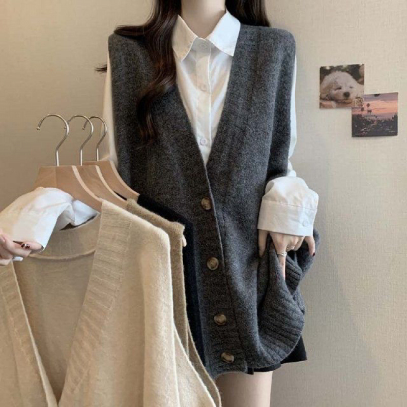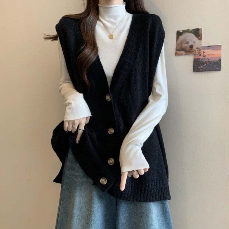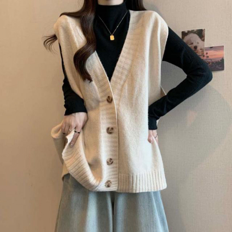 가을 겨울 여성용 플러스 사이즈 조끼 카디건 스웨터, 뚱뚱하고 날씬해 보이고 루즈한 중간 길이 니트 민소매 탑 디자인스토어 가기
