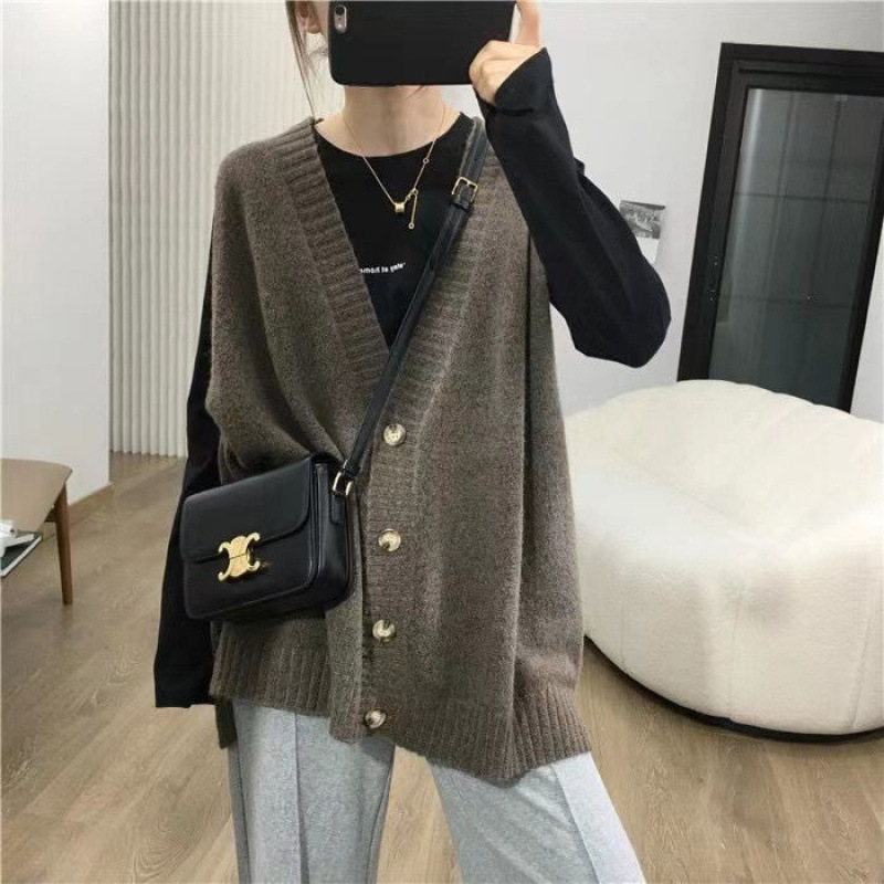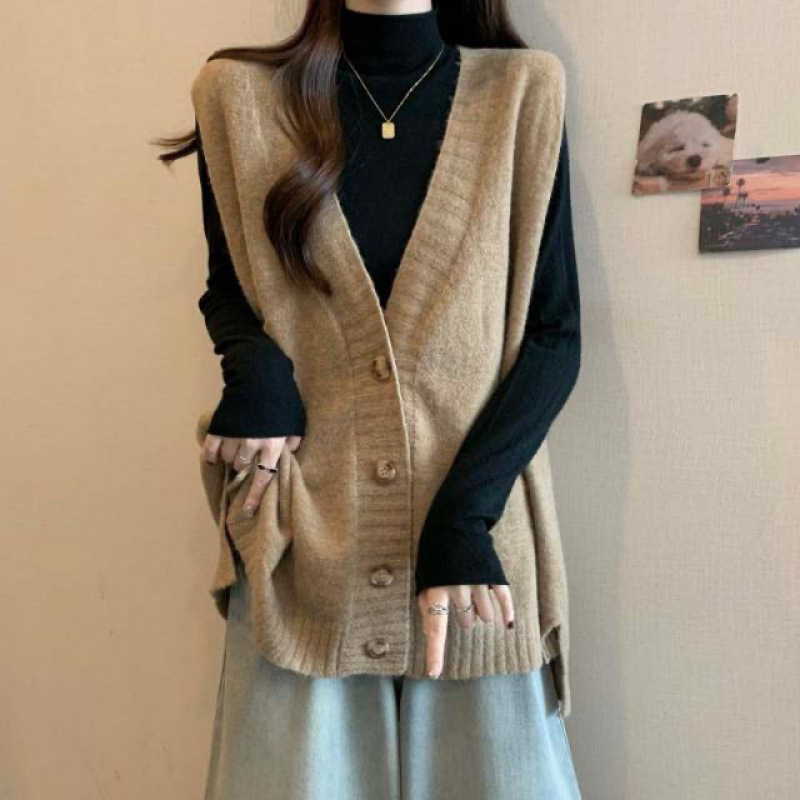 大码马甲开衫毛衣女秋冬胖mm巨显瘦宽松中长款针织无袖上衣设计感