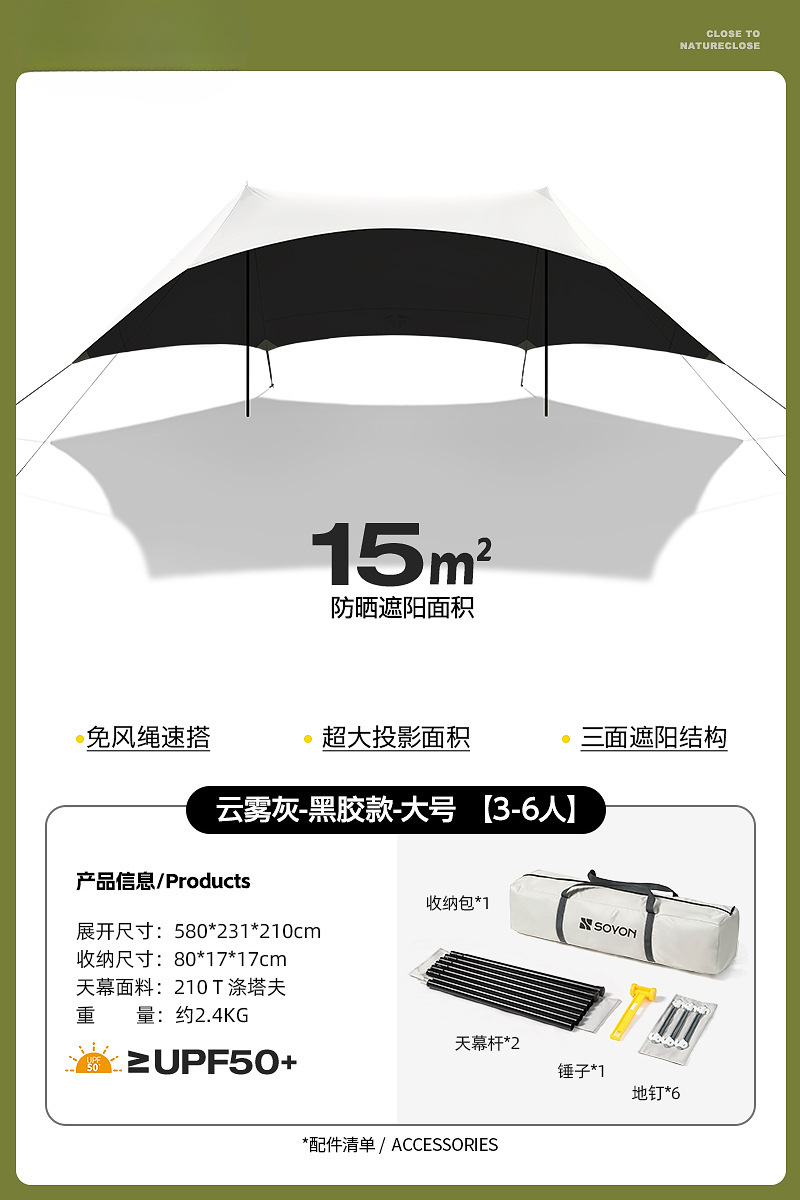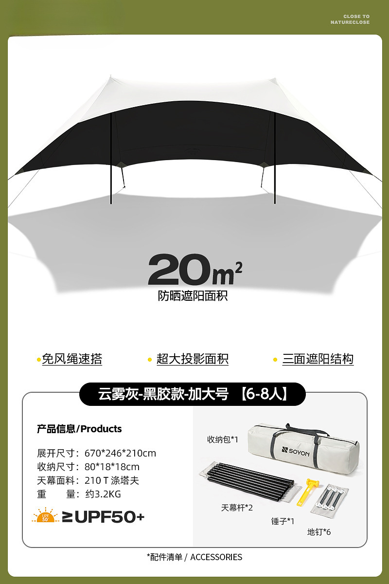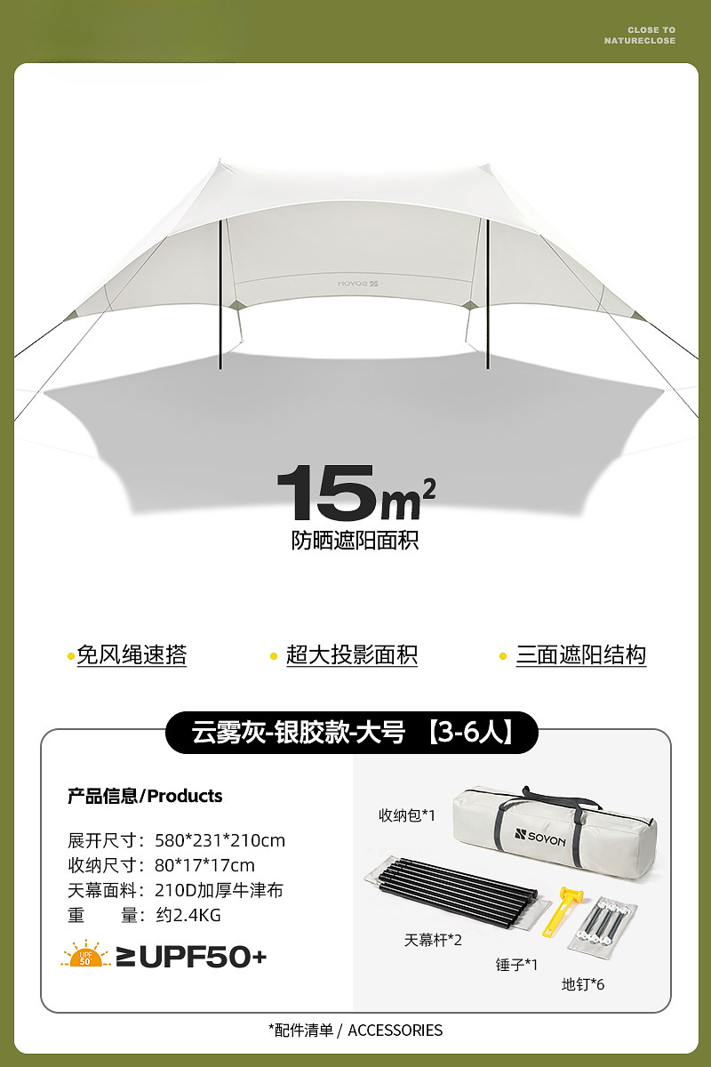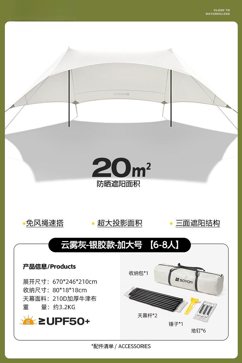 • 클라우드 그레이 - 실버 글루 모델 - 6~8인용 특대형 사이즈 [2단계 빠른 설치]