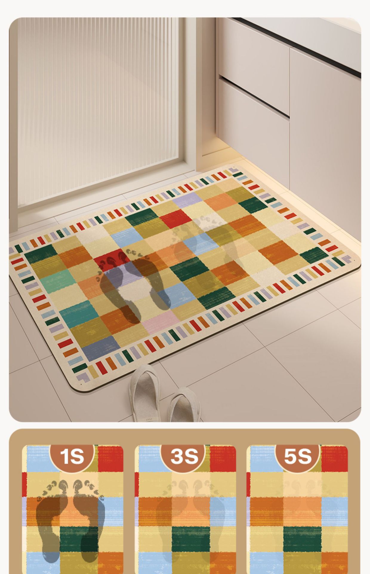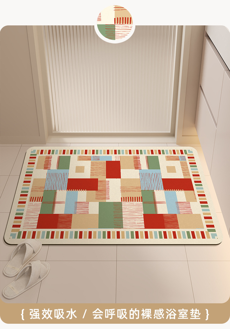 가정용 욕실 문용 가벼운 고급 도파민 규조토 진흙 바닥 매트, 흡수성 미끄럼 방지 바닥 매트, 얼룩 방지, 관리 용이, 세탁 가능스토어 가기
