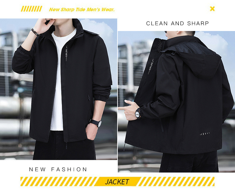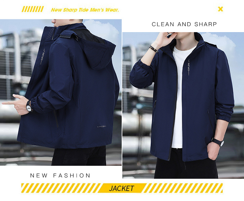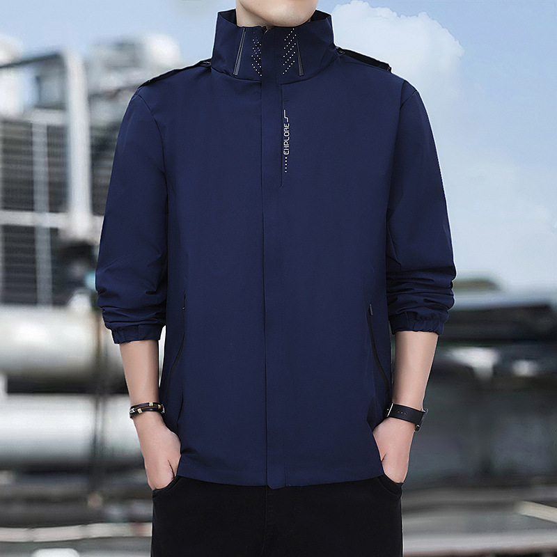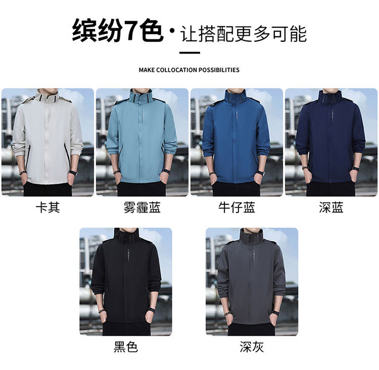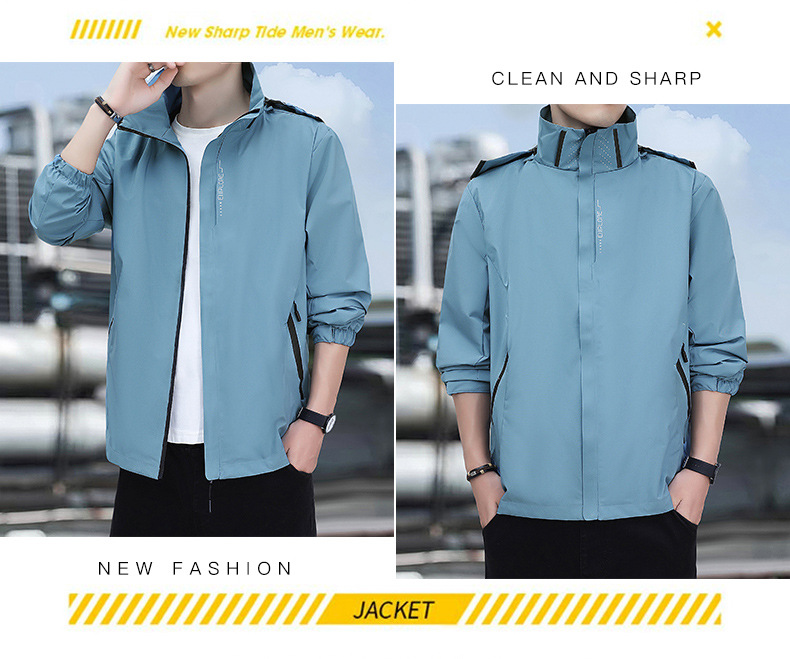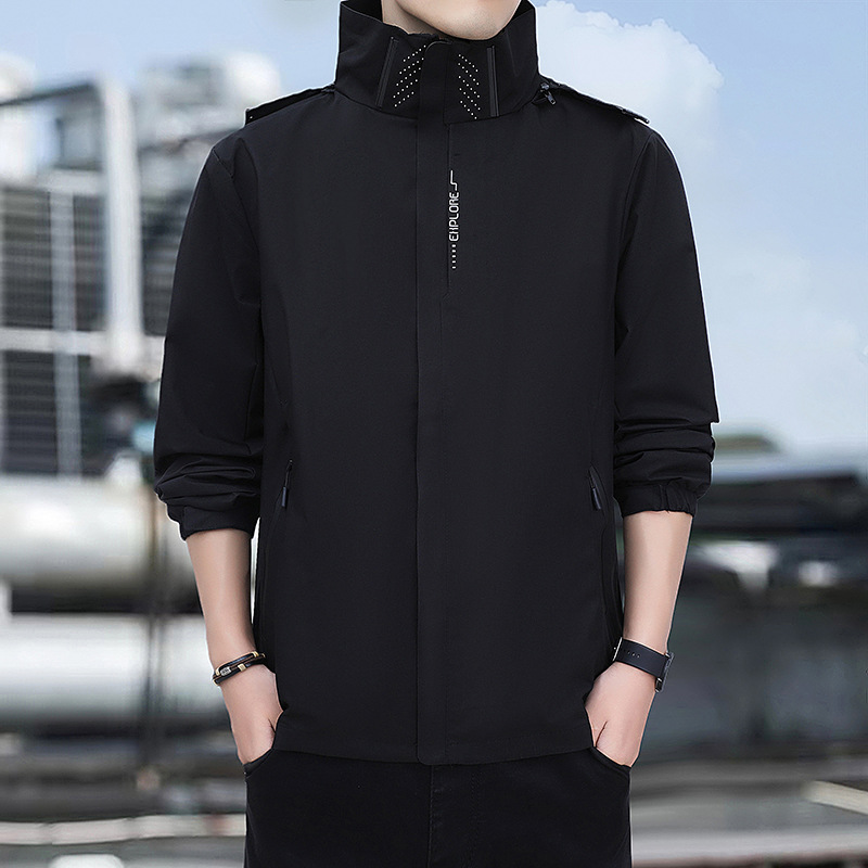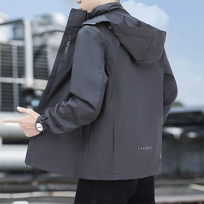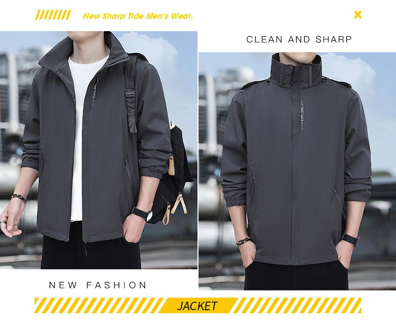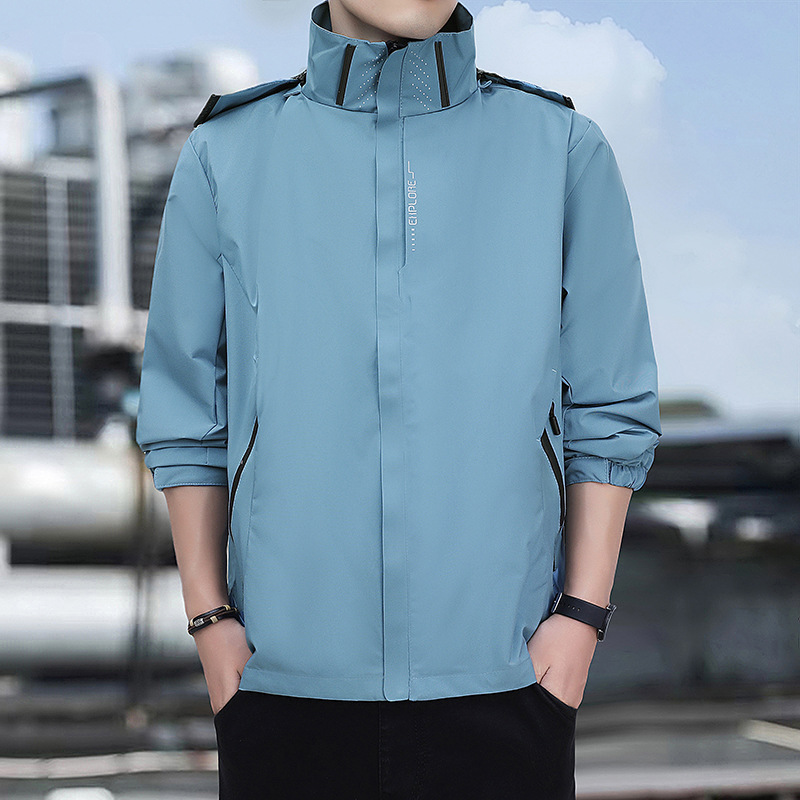 남성용 야외 방풍 및 방수 재킷, 봄, 가을 탈착식 후드 재킷, 남성용 얇은 루즈 재킷