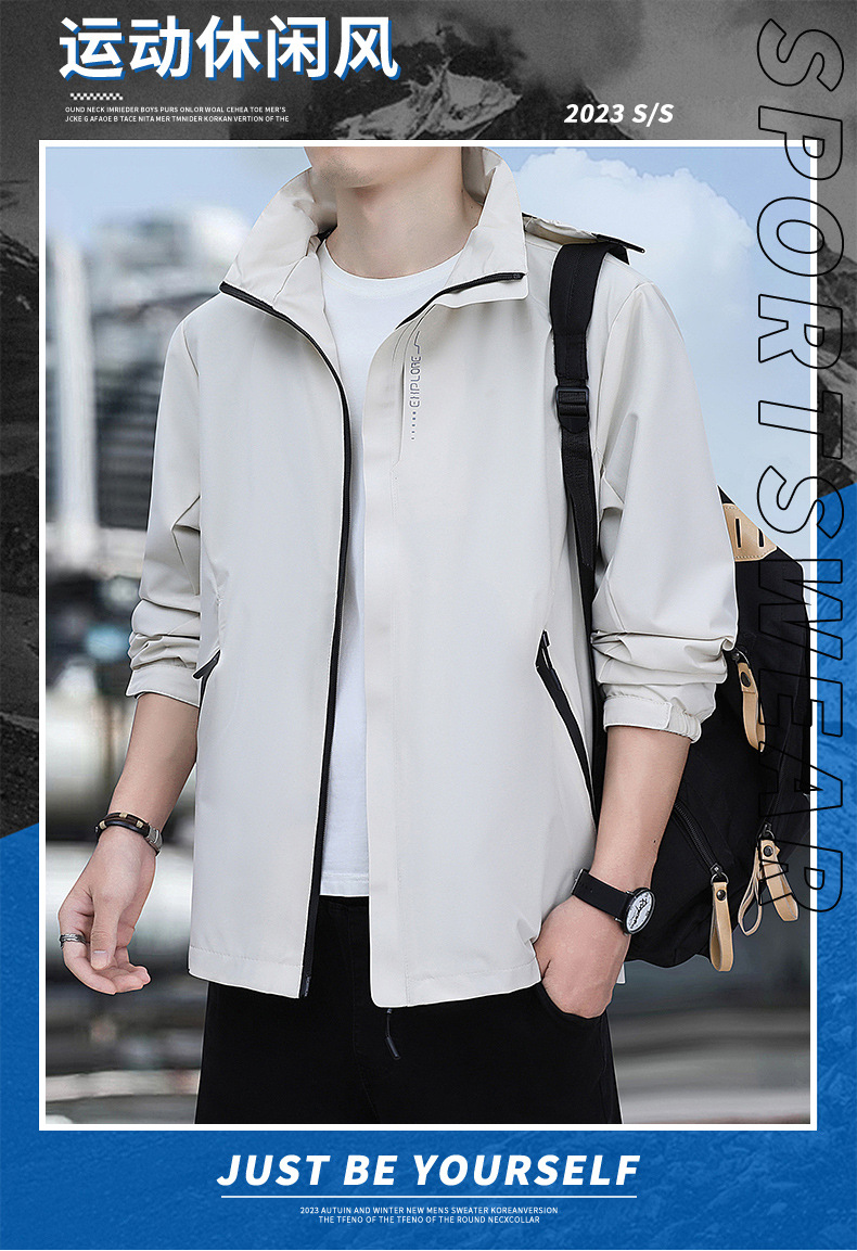 남성용 야외 방풍 및 방수 재킷, 봄, 가을 탈착식 후드 재킷, 남성용 얇은 루즈 재킷스토어 가기