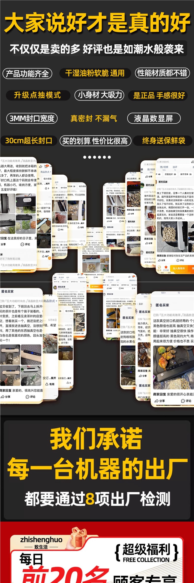 • "5가지 기능, 우아한 블랙 LCD 디지털 디스플레이, 높은 흡입력" 무료 대형 진공백 10개"
